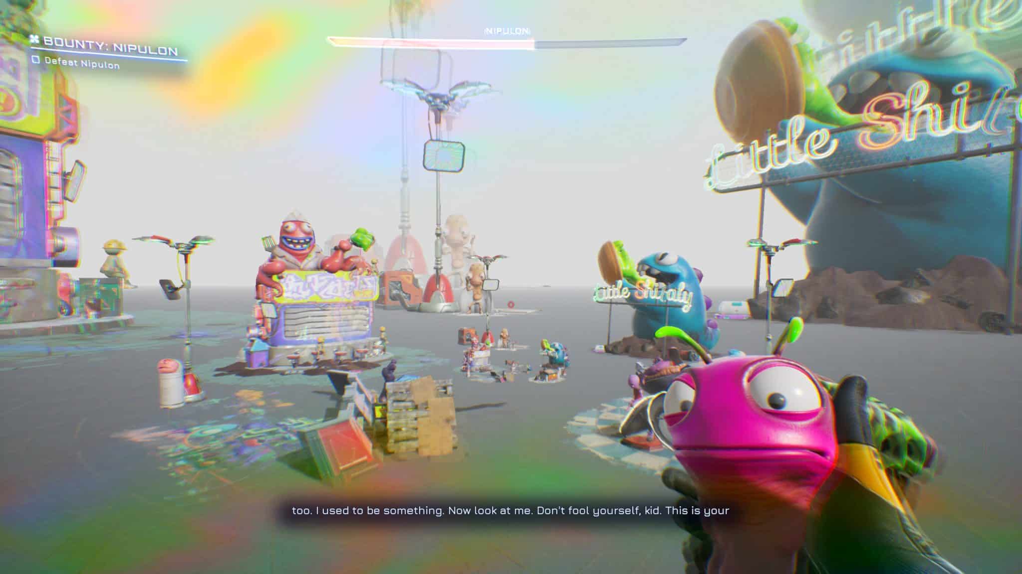 當然好笑只是一個噱頭,一款遊戲還是必須要好玩才能留住玩家。《High on Life》的戰鬥表現遠遠超出我的預期,我在遊戲一開始就選了最難的獵人難度。跟其他遊戲的最難難度相比,老實說並不高。敵人的傷害不是逆天的誇張,卻會有足夠的壓力,需要跑位、躲子彈。在魔王戰的過程死過一兩次,但沒有出現過卡關的情況。