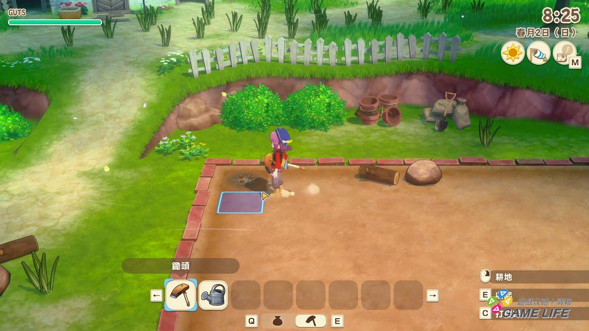 本作在這部分就有進行些調整,例如初期就可以透過跳躍這個動作一次對三個格子進行農業動作,或是活用本作的關鍵字「風」這個設定,讓玩家有滑空移動,可以減輕移動到遠處地點的壓力。當然選單介面也會進行調整,盡可能不要顯得太過複雜讓玩家眼花撩亂,整體都維持著相當「乾淨」的選單介面。