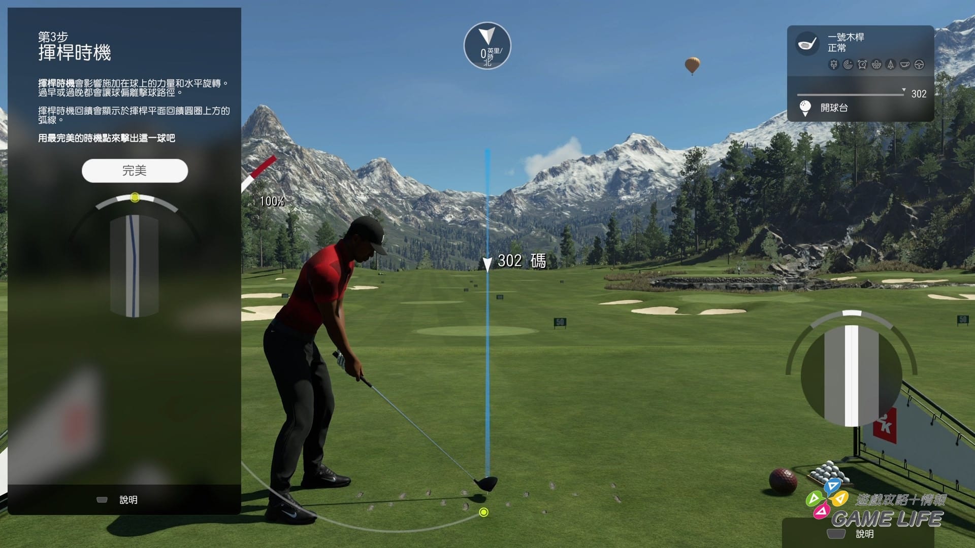 像是遊戲一開始,會讓玩家選擇揮桿方式,本遊戲的基本揮桿概念就是用類比,類比往後拉舉桿、往前推揮桿,雖然單純,但其實在時機上很難掌握。遊戲系統有設定「力道」,簡單講就是舉桿時顯示的力量計量表升到特定時機揮桿就會是最佳力道,這對反應力較慢的玩家來說可能就會難以掌握。