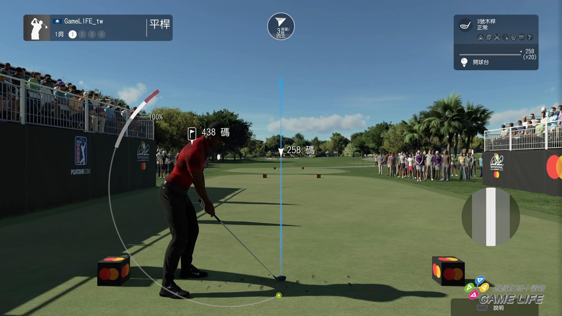 習慣操作後,就是正式開始球賽了。如同上述,玩家可以選擇單人或線上多人,就算是單人模式,也是可以設定對手,甚至可以從網路上下載其他玩家的「分身」來當虛擬對手。更進一步,遊玩的球場,甚至是球場狀況都是可以觀察且挑選的。簡單地說就是自由在自己想要的領域用手把打高爾夫就對了。