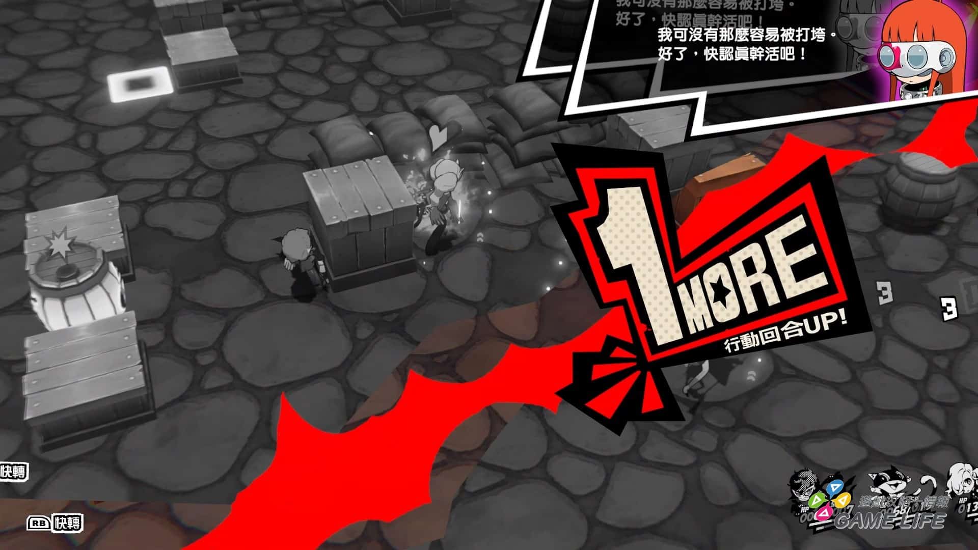 主要重點當然是在「戰略」上,戰棋回合制這個系統在日本遊戲算是有一定標準設計,剩下就是要如何去加料或改良。本作遊戲上一個主要特色,玩家最多只能派出 3 人上陣,活用一些來自《女神異聞錄 5》的特徵來面對敵人大軍,達成關卡要求的過關條件。