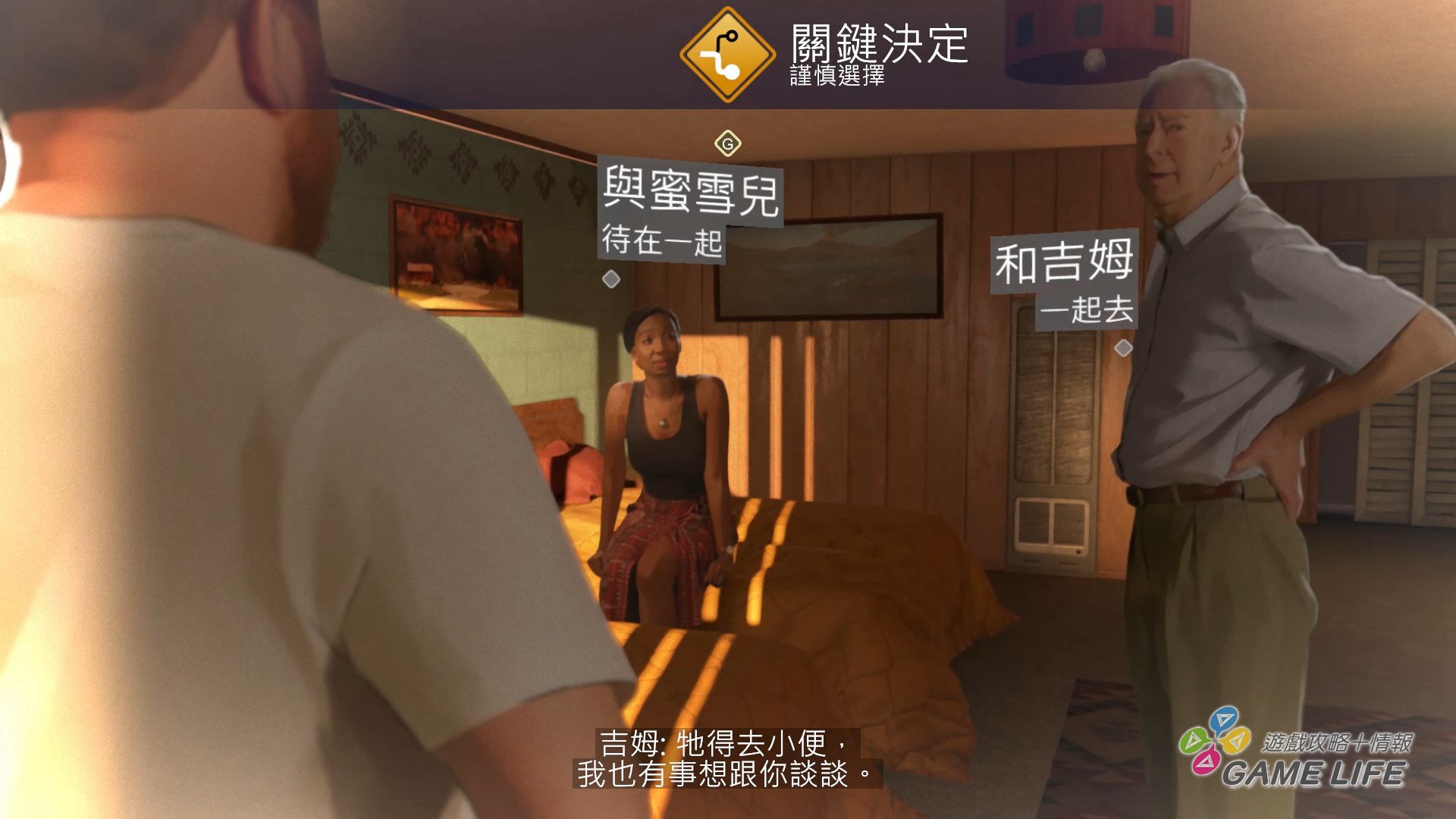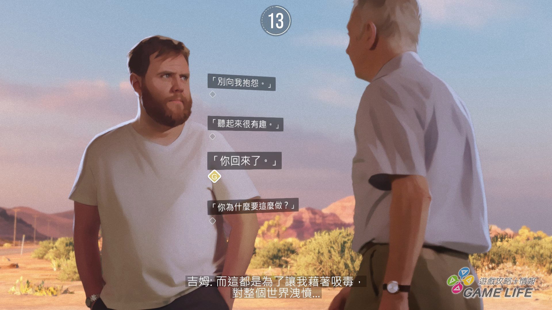 剛剛提到,本作多數時候劇情帶給玩家的情感是「負面」的,這也不是說劇情寫得不好,而是當中面臨的問題對不少人來說太過沉重。以一開始為例,主角之一的文斯,在航空公司上班的他卻因為公司就飛機出狀況的問題全部都讓他背,導致他失業,只能帶著妻女搬到鄉下打零工過日。然而,過去拋家棄子的文斯父親,卻因為得了絕症,突然跟文斯見面,希望晚年能跟文斯一起住重新培養父子情。