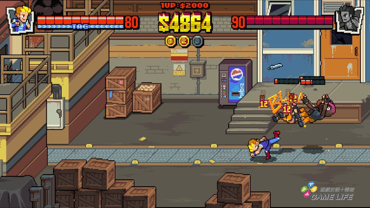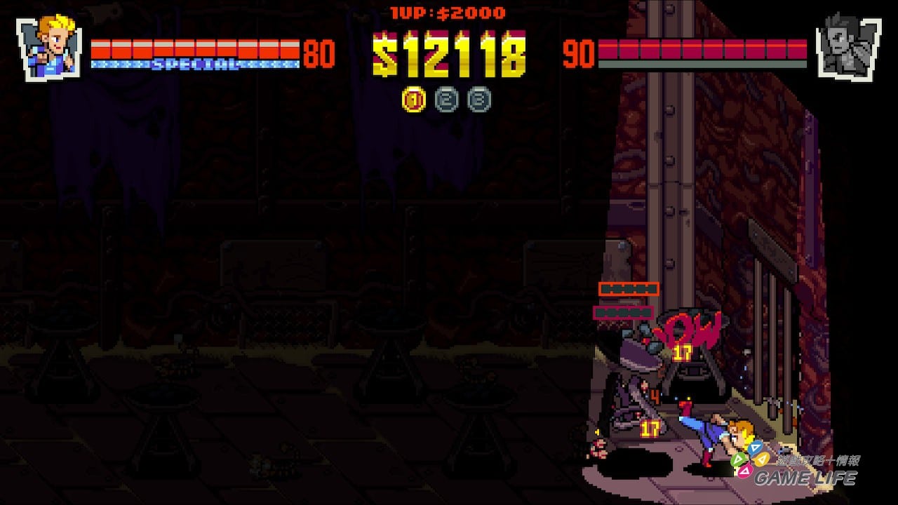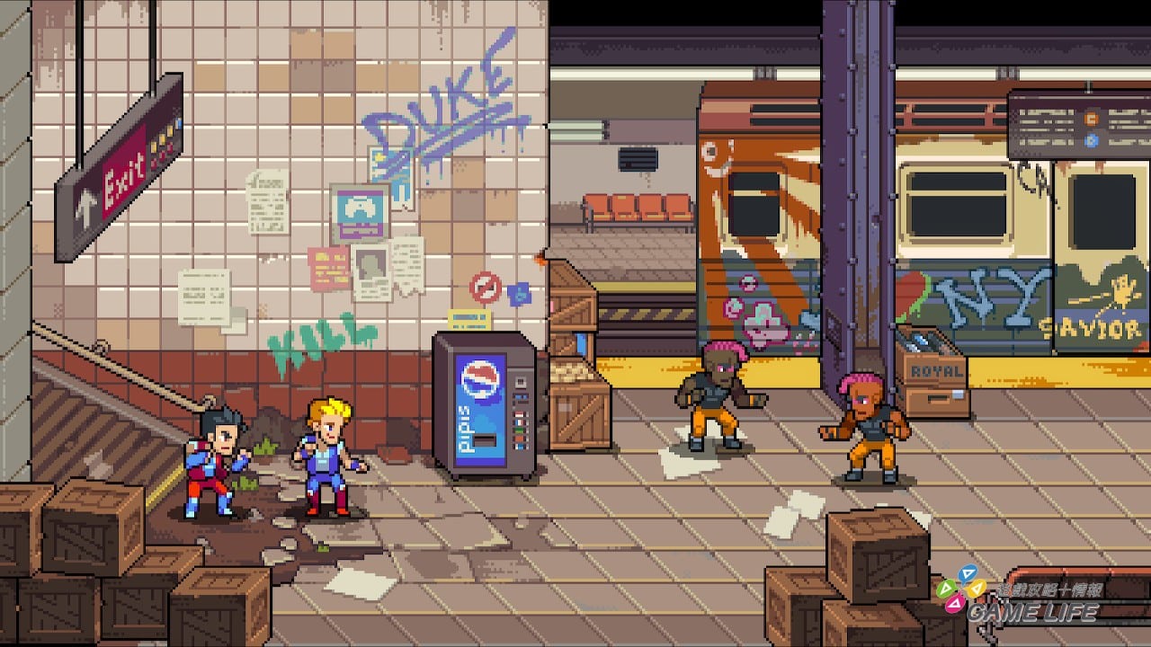 本作有確實地設計出這個手感,玩家仔細注意人物動作,就會看到點陣圖構成的人物慢慢地伸出一拳一腳,反射神經再慢的玩家都可以看仔細人物的一舉一動。也因此整個打擊感其實很強,橫軸縱軸的應對都要看得一清二楚,這個系列特色好好地保留下來了。