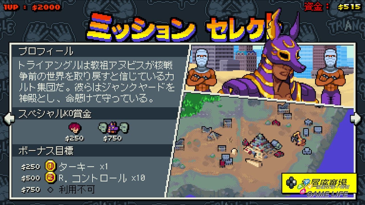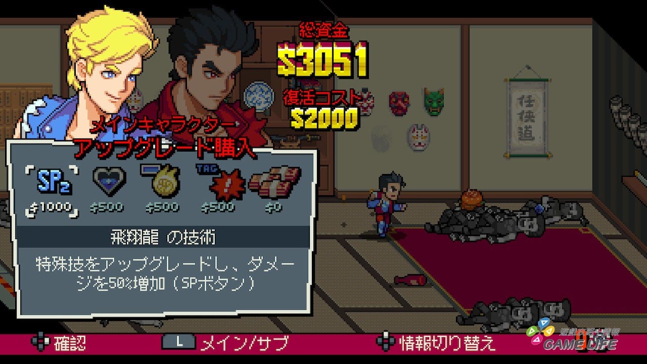 這算是本作跟系列相比最特殊的地方,小關通過後系統會隨機提供幾個項目玩家選擇,玩家可以花費資金強化角色的戰鬥性能,或者是獲得更多資金。因為有隨機性,玩家不一定能馬上取得想要的強化項目,也因此關卡的挑選順序與獎勵的變化性,就會為遊戲難度帶來變化跟樂趣。