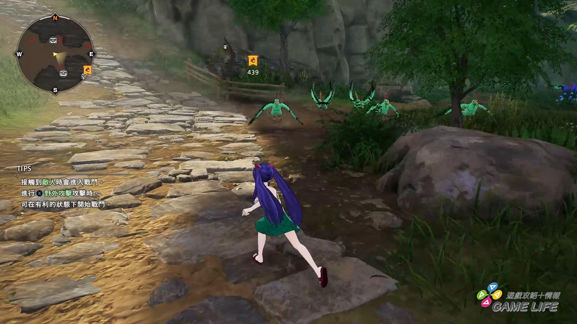 當然還是會提供玩家一定程度的自由,例如在城鎮或迷宮中探索找保箱、收集素材等等。本作有透過小地圖事先就告知玩家目標地點在哪、寶箱在何處。不過地形隱藏有點刁鑽,小地圖看得到寶箱,也不是就保證路途上沒有高低差跟障礙物,讓玩家可以馬上取得寶箱中的寶物。