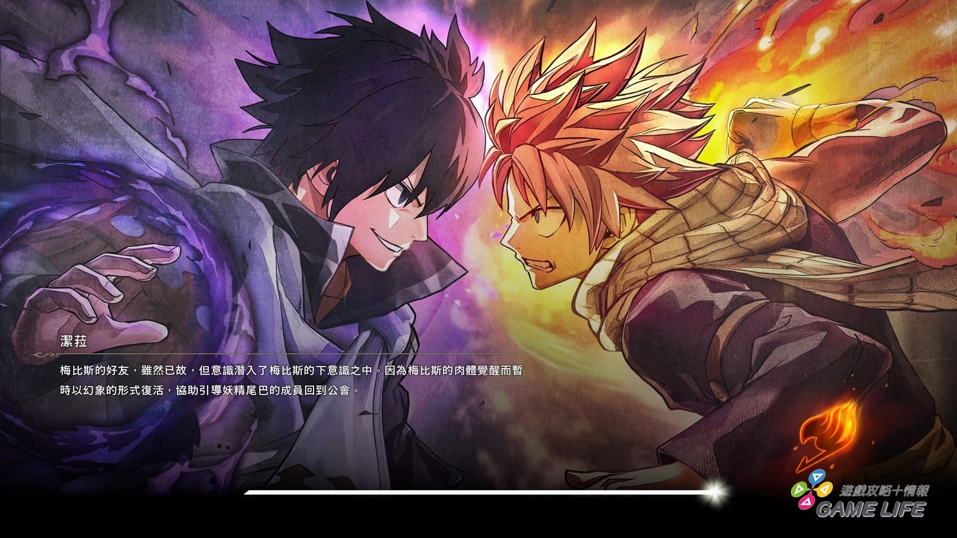 本作基本上是在敘述原作動漫畫終盤的故事,也就是「途中開始」的劇情,雖然遊戲中安排了各種關鍵字解說、同伴劇情來解釋跟介紹至今為止的內容。但畢竟《FAIRY TAIL》本篇是長達 63 集的漫畫,阿爾巴雷斯帝國一戰是最後 52 到 63 集的內容,前面多達 50 集以上的內容光看簡單的敘述就要消化掉還是有些困難,筆者個人還是建議有接觸過前作遊戲或看過《FAIRY TAIL》本家動漫畫,再來接觸這個 2 代。