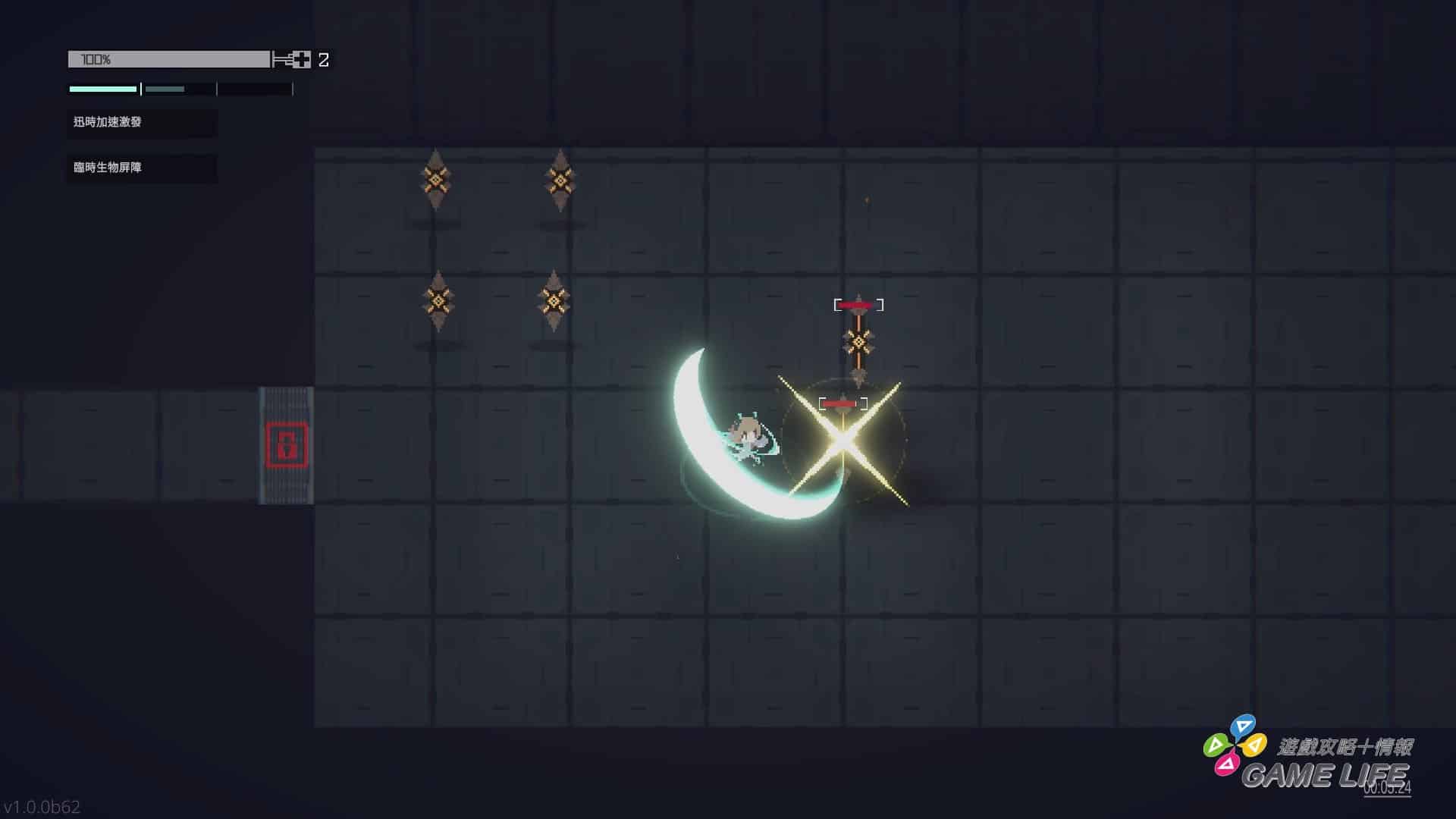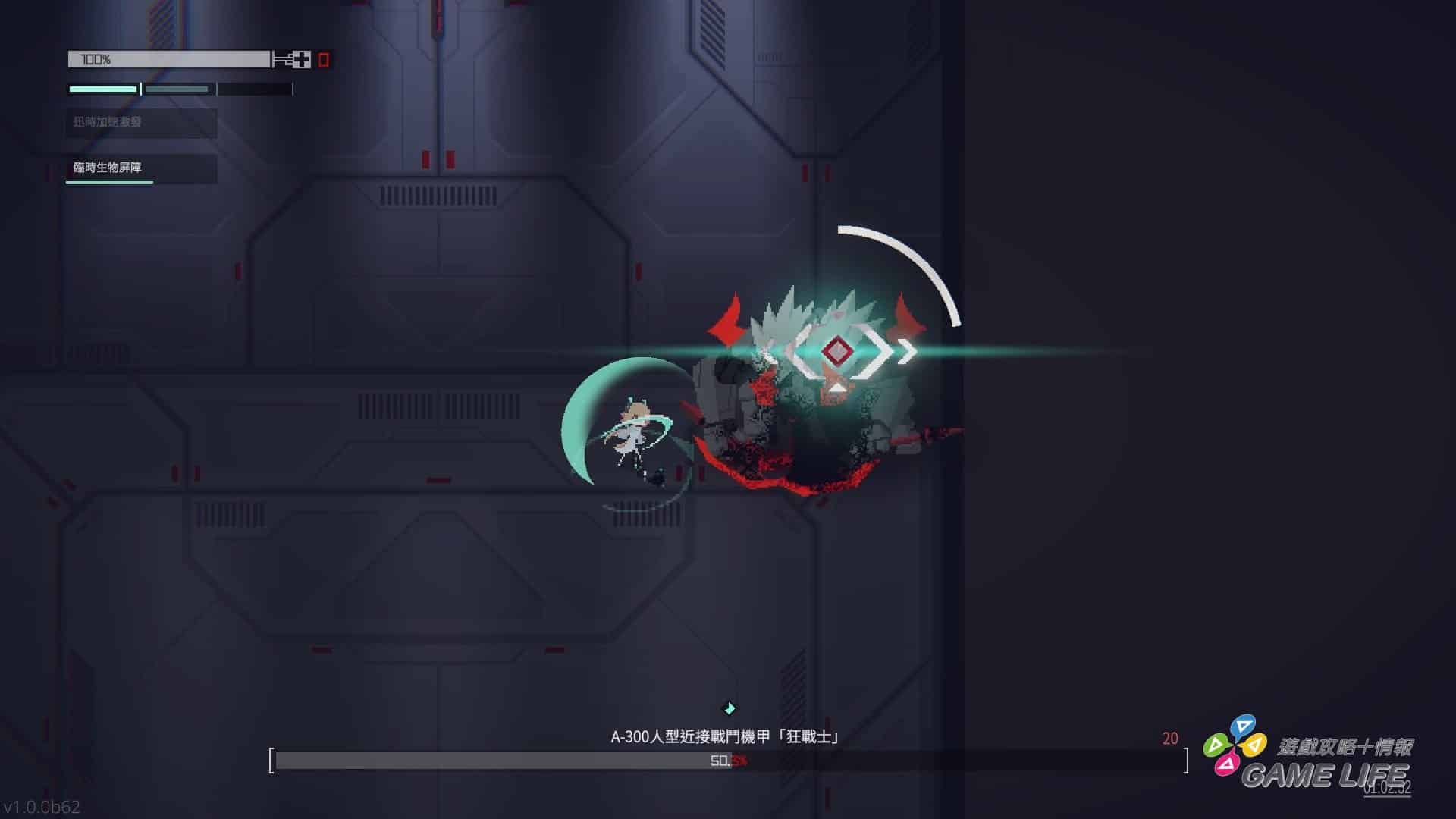 雖然多數的技能會有副作用,但主要是可以讓玩家對症下藥的,透過特定技能組合來發掘針對特定頭目的攻略法,例如彈幕眾多的頭目,就可以裝備攻擊能砍掉彈幕,並搭配防禦跟砍彈幕能增加能量的技能來讓自己有更多攻擊機會。反覆挑戰的過程中尋找出適合對付頭目或讓自己攻勢更強的組合,也是這遊戲的樂趣之一。