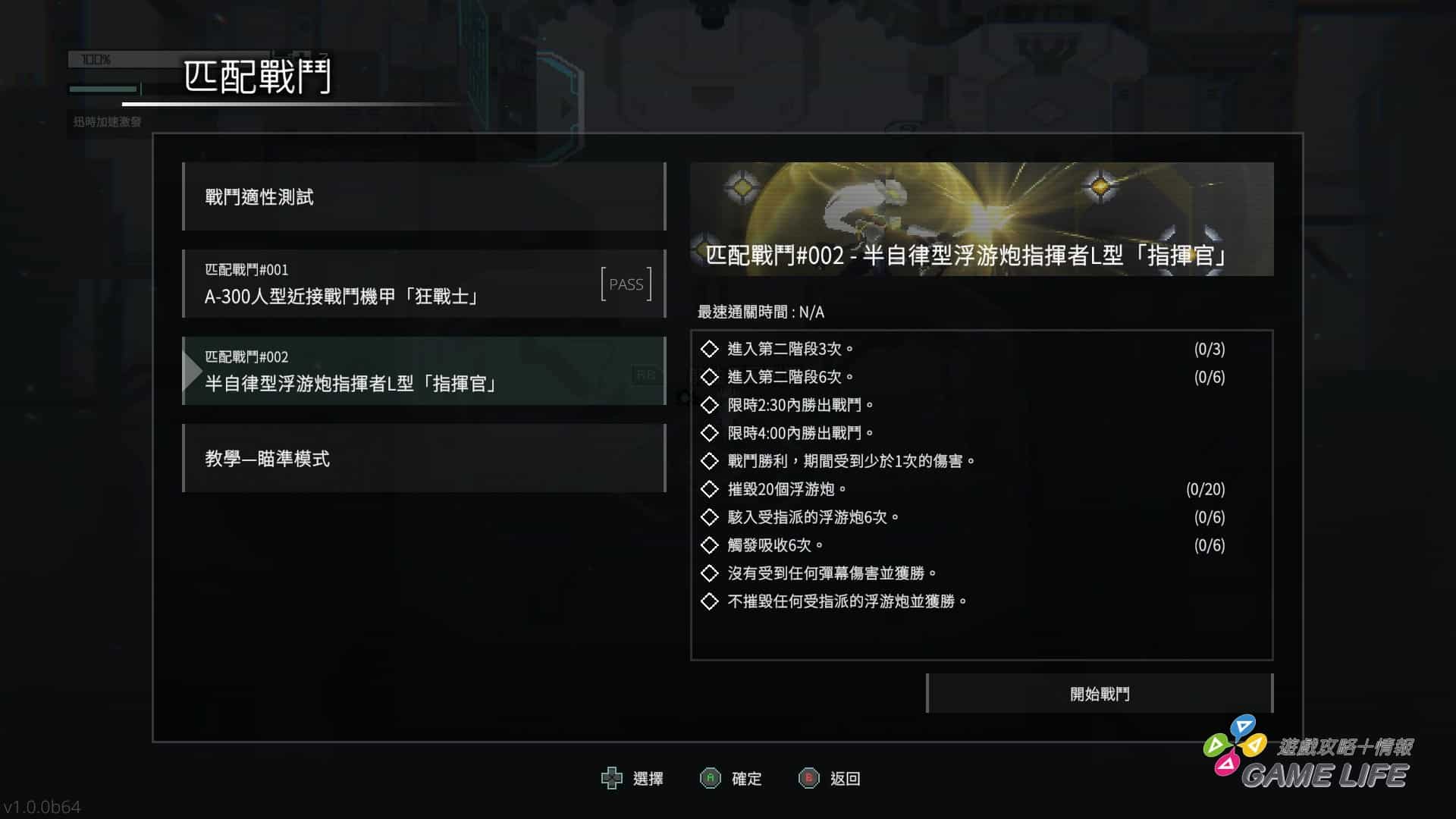 開始遊戲時會有個據點讓玩家能自由行動(記錄採自動存檔),玩家可以操作「安妮塔」跟「溫妮」聊天、觀看跟劇情有關的文件資料、學習與裝備技能、打打挑戰關、或鼓起勇氣前往主線關卡。筆者建議剛進入遊戲碰過基本操作教學的玩家,可以先往右側的挑戰關,一開始有障礙賽跑跟最速殺敵兩個挑戰關,先摸摸那兩關了解本作的操作手感跟戰鬥節奏。