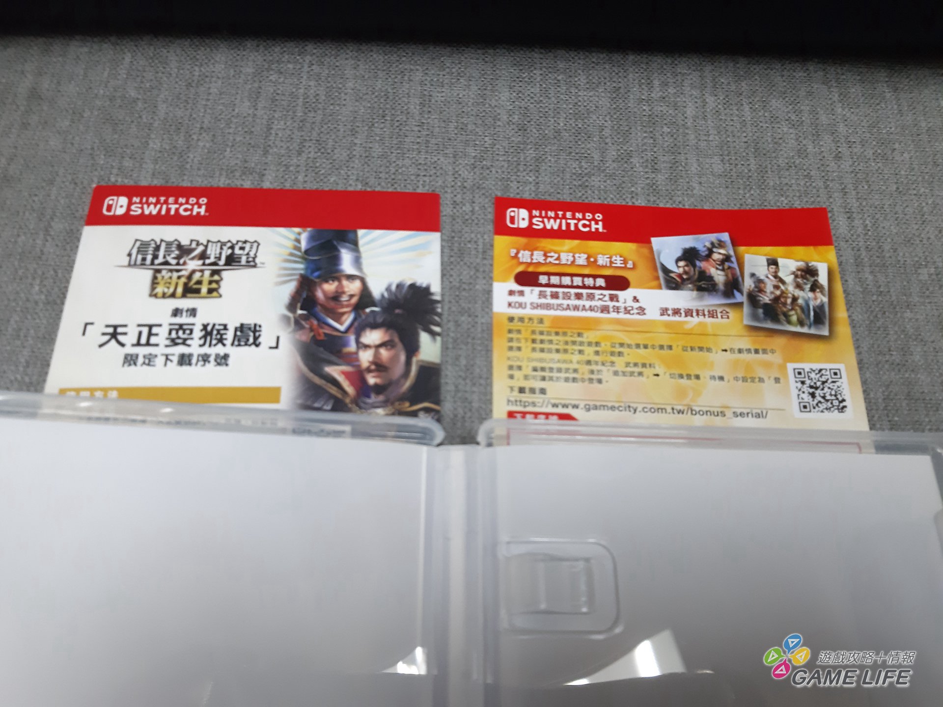 特典版外盒雖然是標日文,不過實際上 Switch 版遊戲是有支援中文的。盒中也附有下載序號,包含追加劇情等額外要素。特典版中除了遊戲最先看到的會是 2 片裝原聲帶音樂光碟,收錄本作充滿各種歷史氣息的樂曲;而最大的特典贈品就是武將畫冊,除了收錄精心設計的武將造型外,也添加了一些簡單的攻略資料可以參考;最後一樣贈品就是畫上各種戰國歷史事件的萬年曆,讓產品可以兼具美術價值跟實用性。