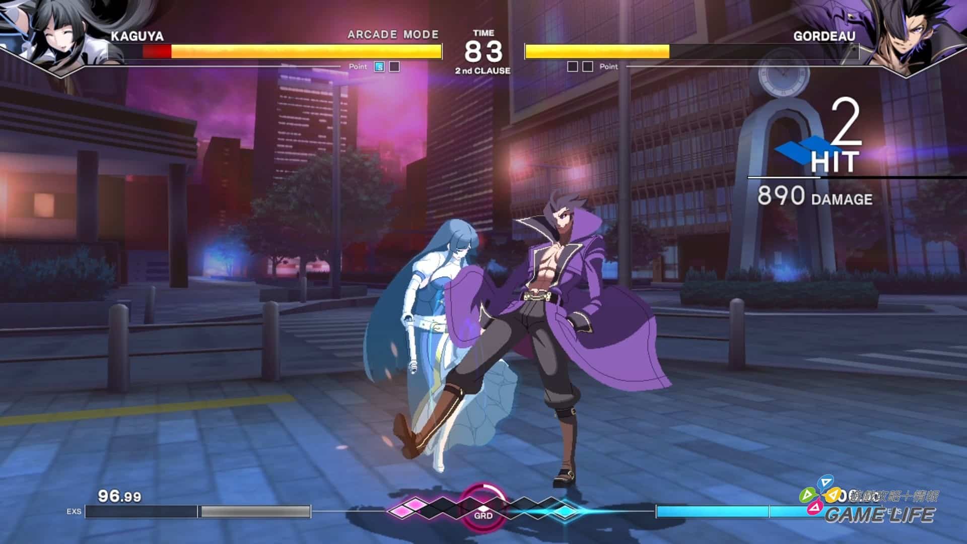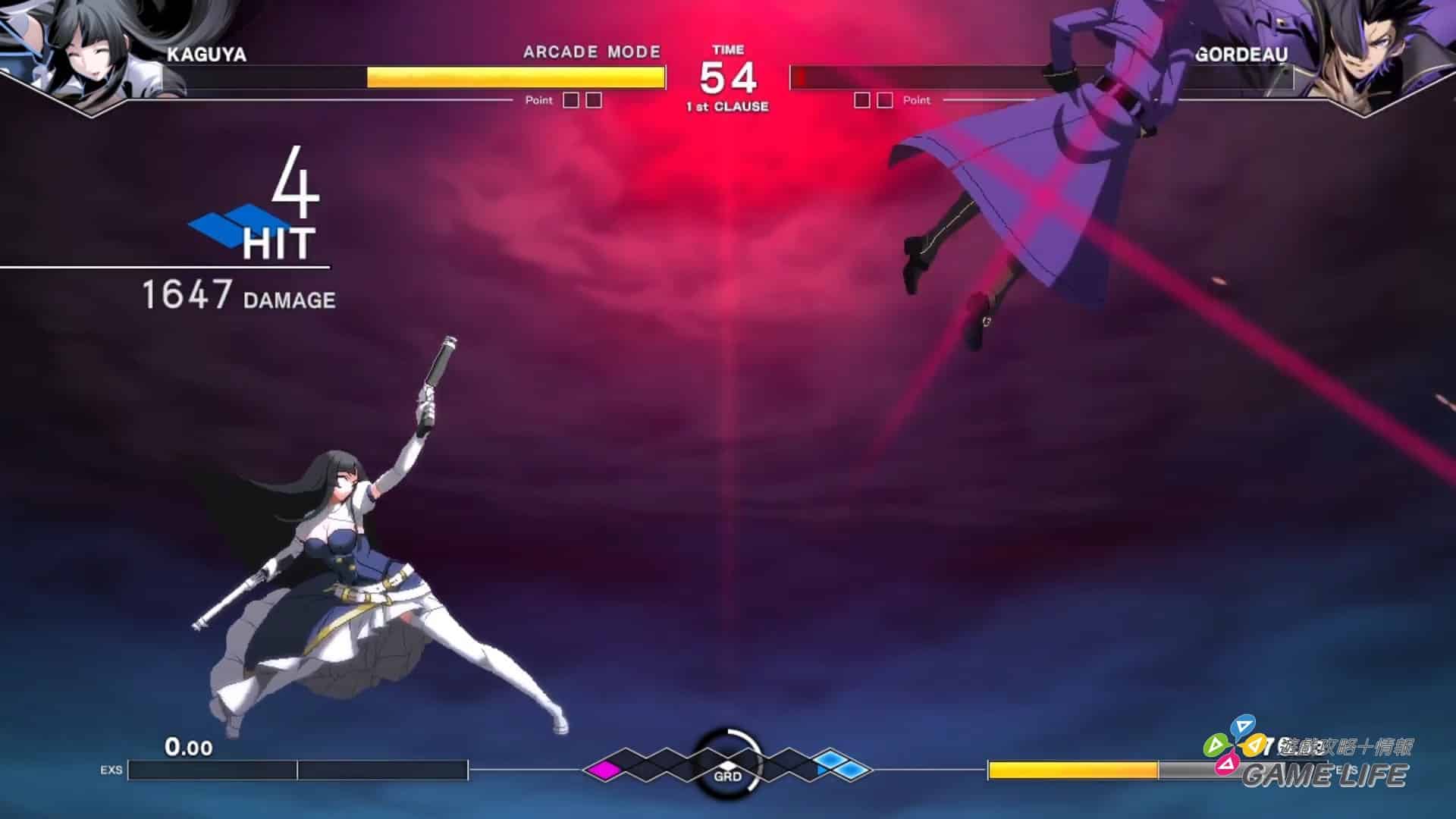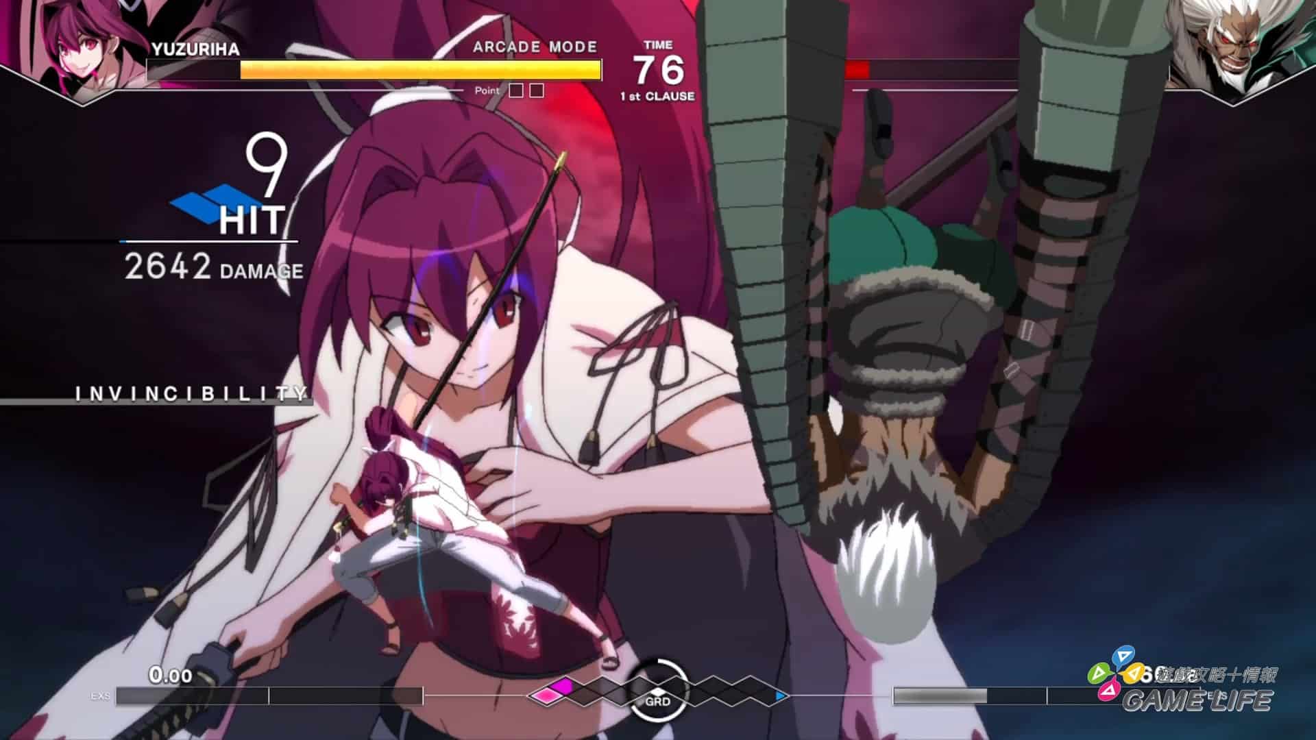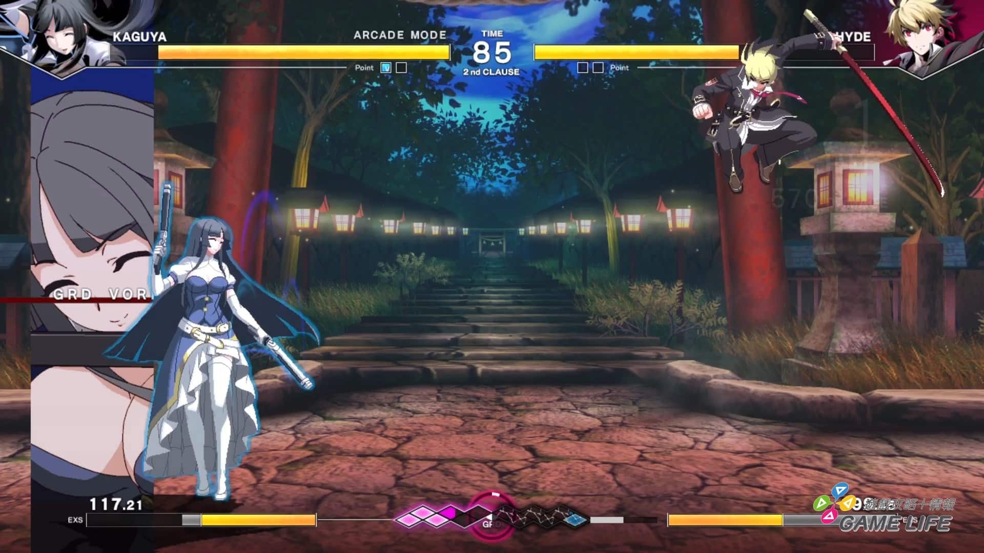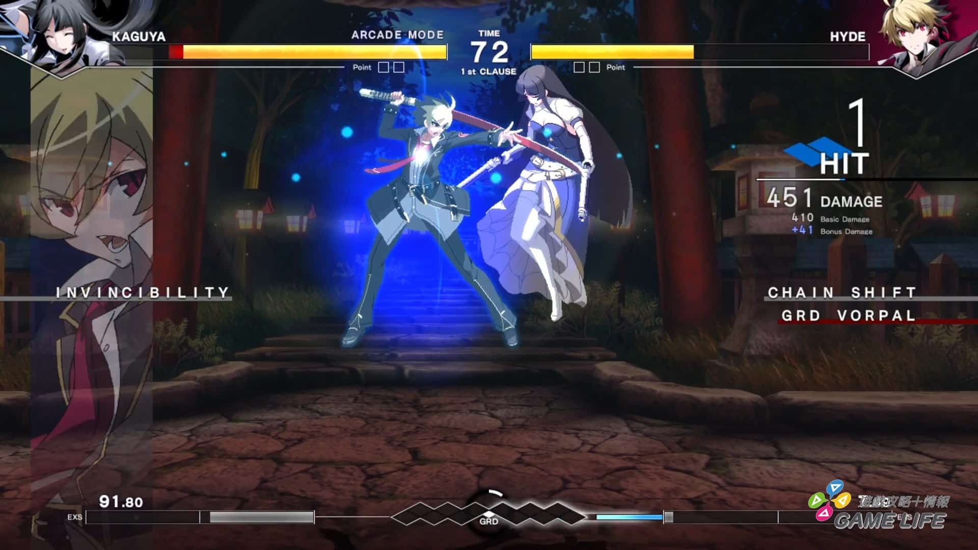 另一個難以入門的要素就是在計量表要觀察的資訊也較多,除了使用強化版指令技跟超必殺技需要的計量表,俗稱「氣條」外,還有個 GRD 計量表,聽起來就兩個計量表沒什麼了不起,這 GRD 量表頗為特殊,也能說是《夜下降生》系列最大的特色。