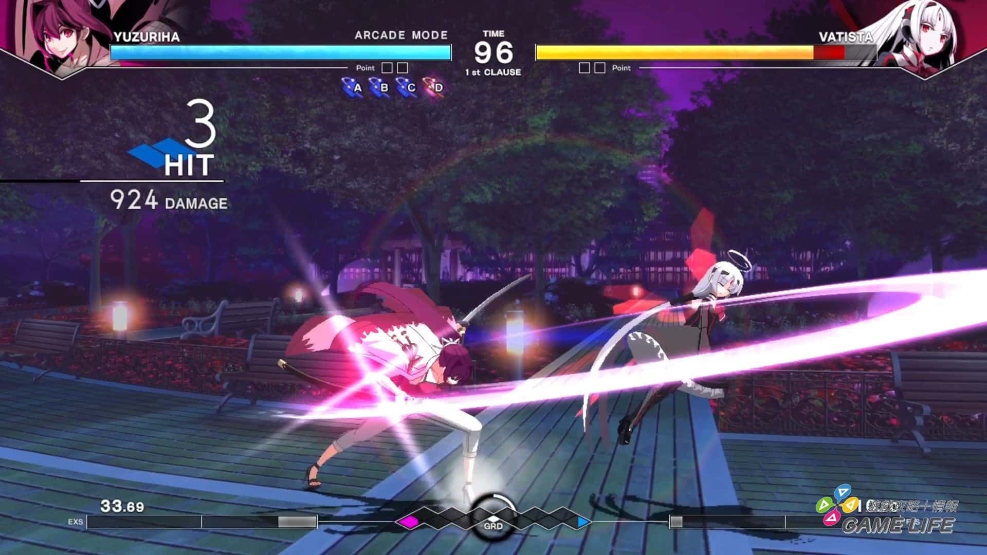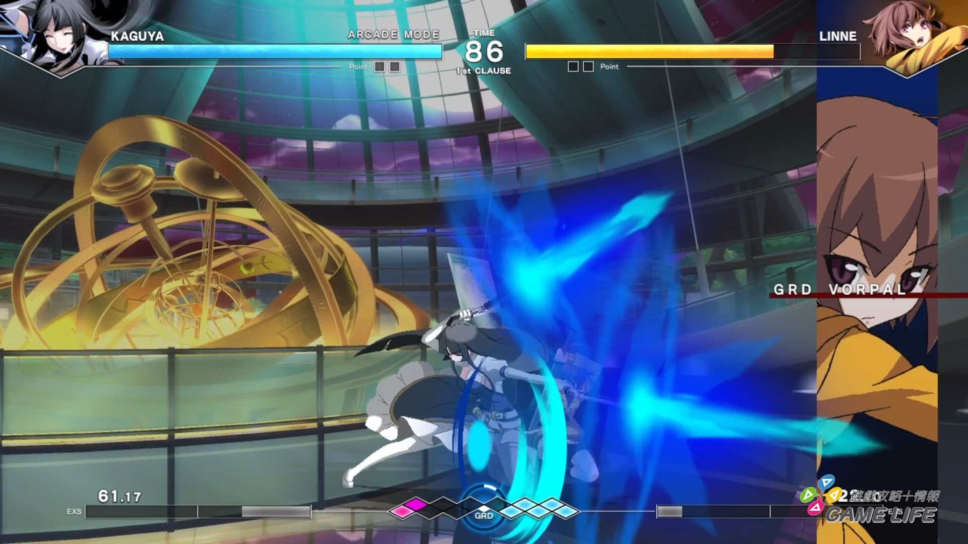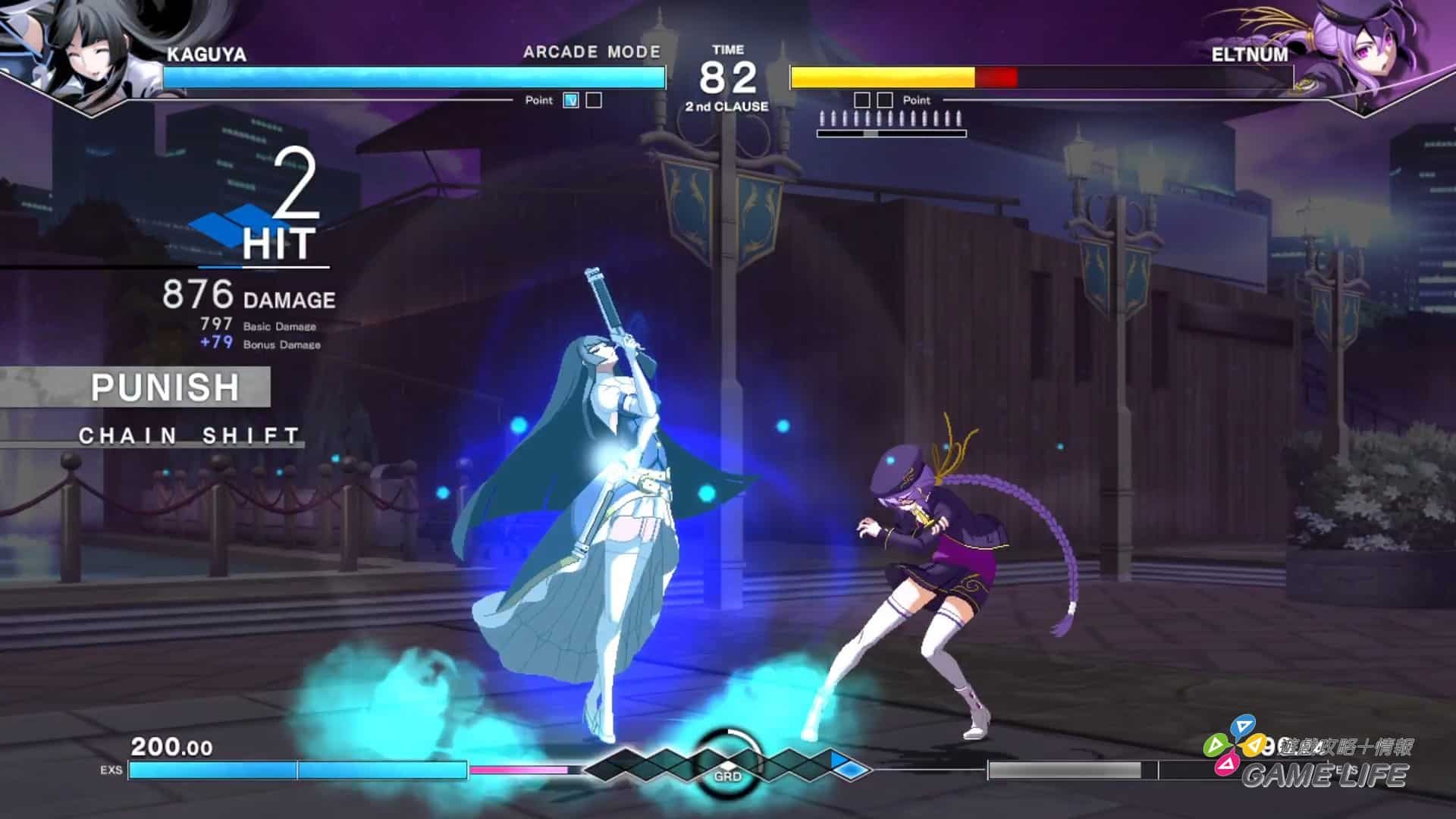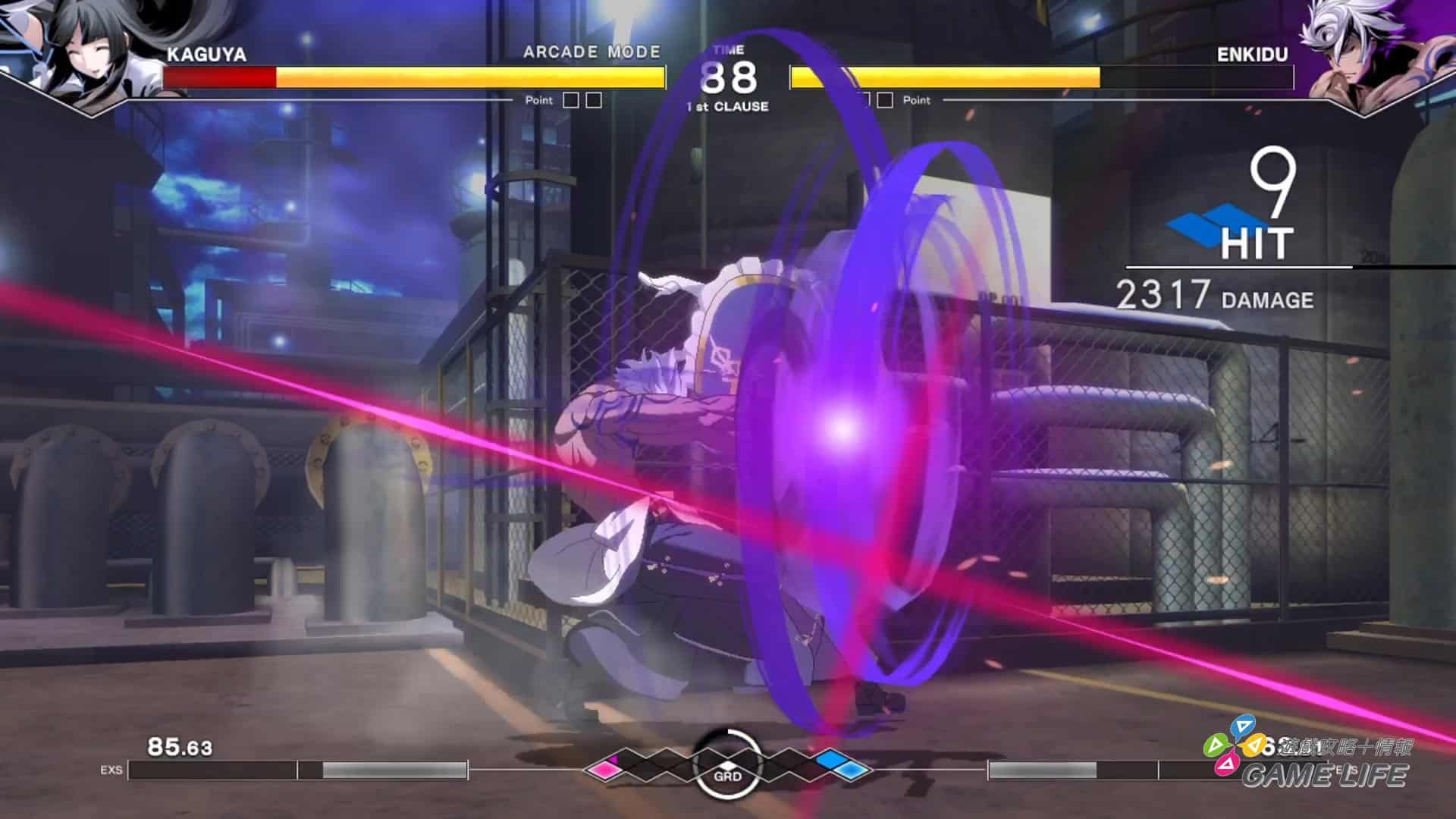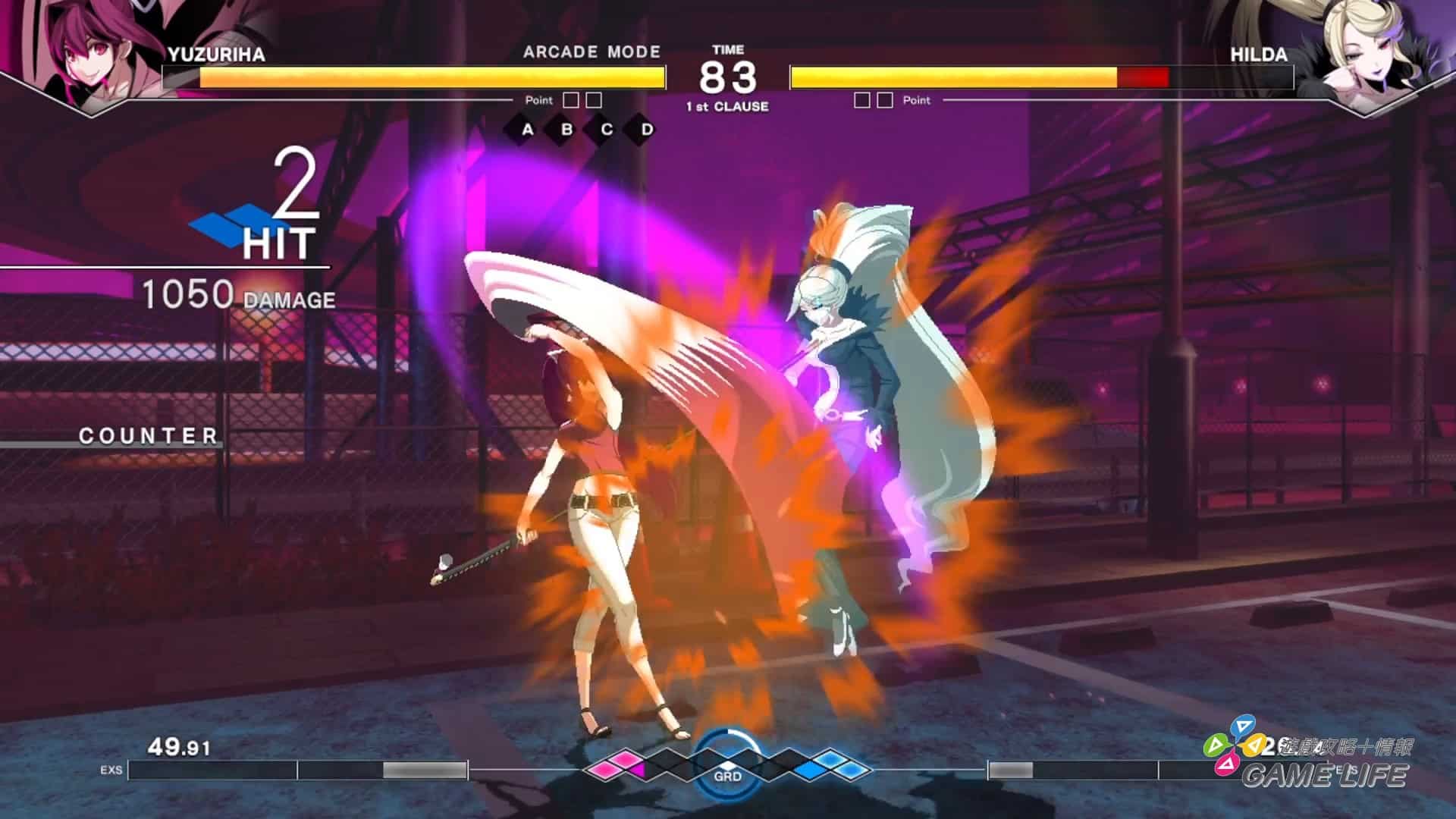 另一個難以入門的要素就是在計量表要觀察的資訊也較多,除了使用強化版指令技跟超必殺技需要的計量表,俗稱「氣條」外,還有個 GRD 計量表,聽起來就兩個計量表沒什麼了不起,這 GRD 量表頗為特殊,也能說是《夜下降生》系列最大的特色。