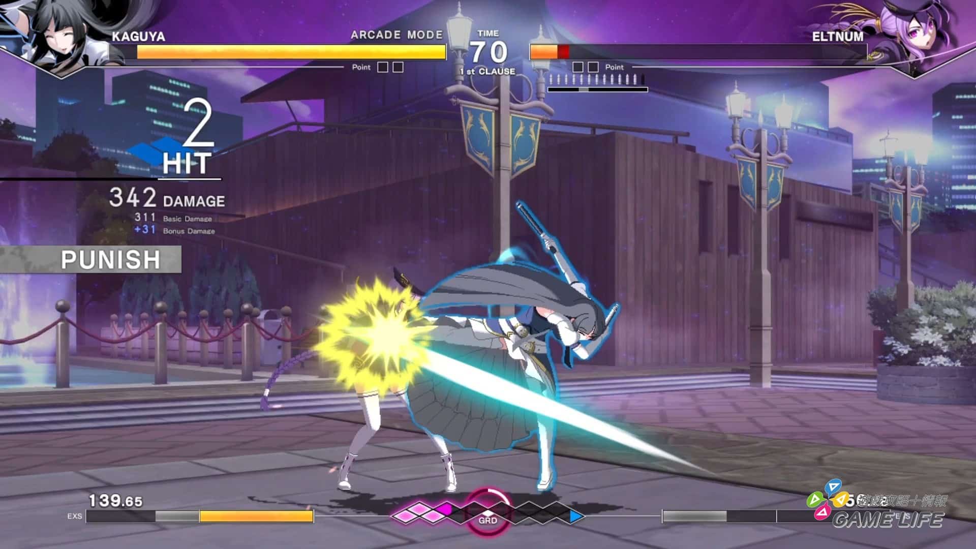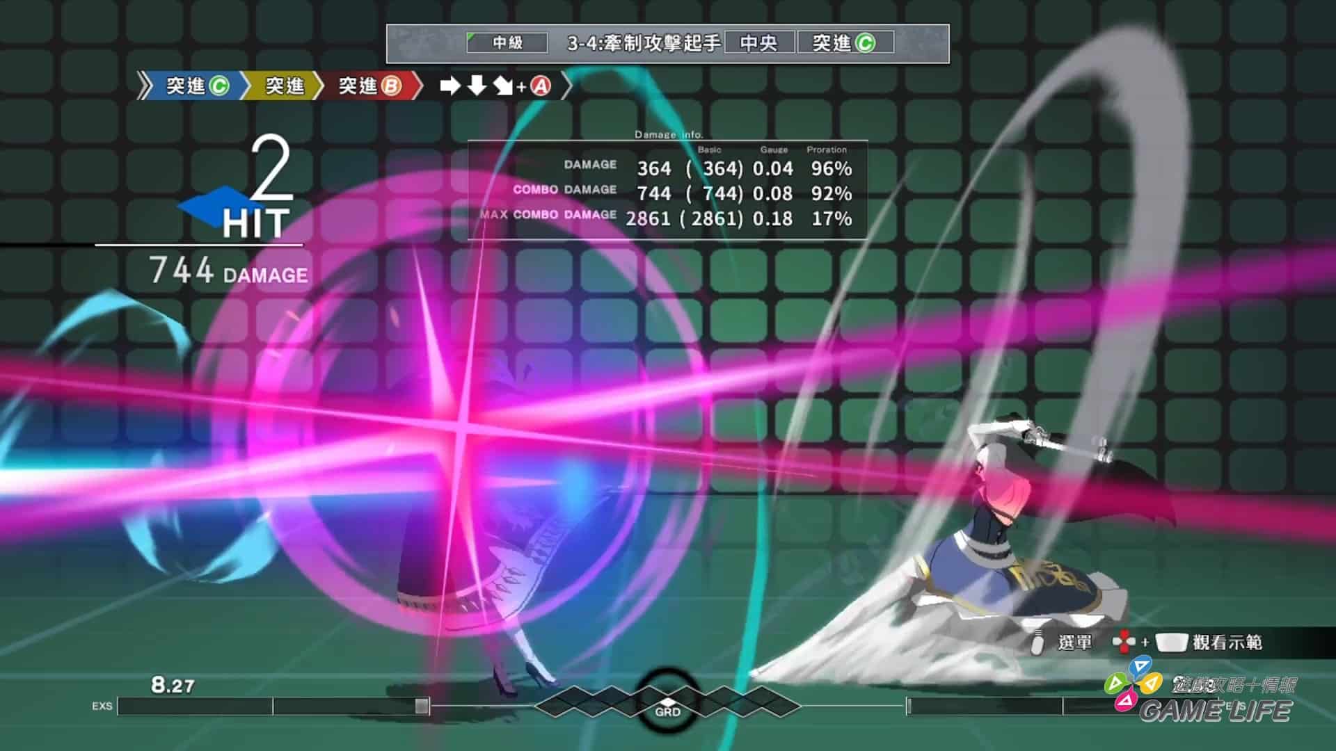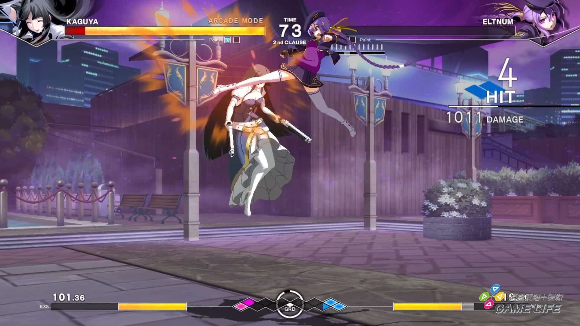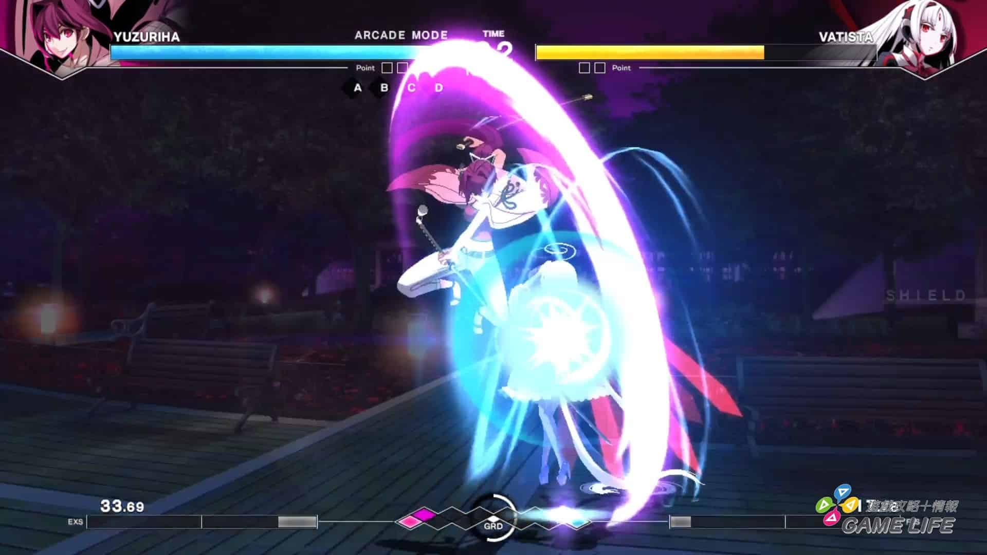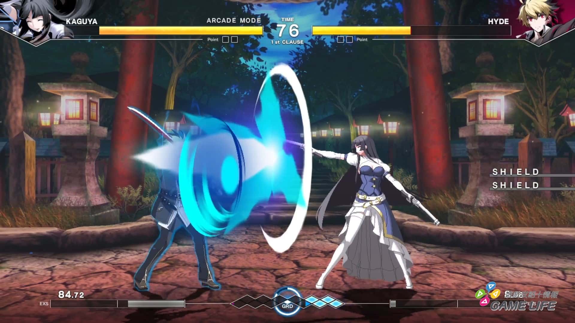 另一個難以入門的要素就是在計量表要觀察的資訊也較多,除了使用強化版指令技跟超必殺技需要的計量表,俗稱「氣條」外,還有個 GRD 計量表,聽起來就兩個計量表沒什麼了不起,這 GRD 量表頗為特殊,也能說是《夜下降生》系列最大的特色。