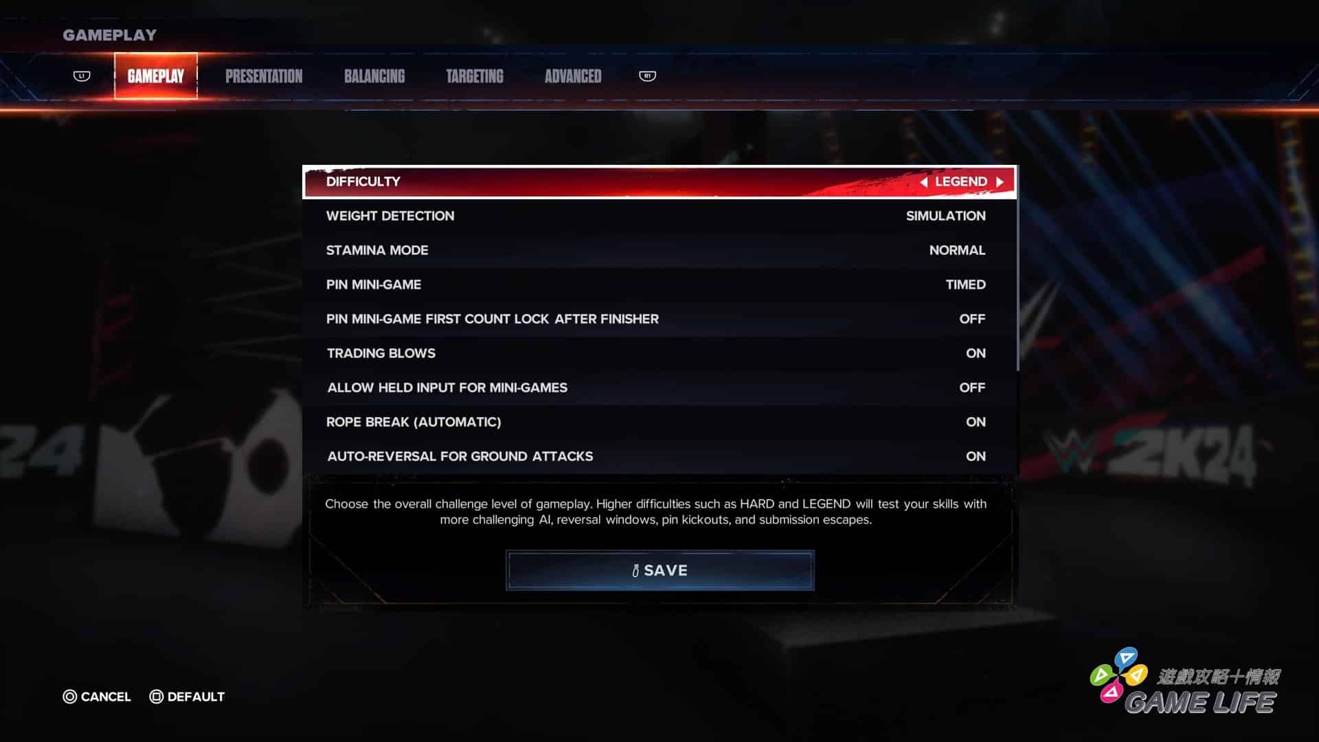 因此本作整體戰鬥系統上,對新手可說是非常溫柔,玩家可以從低難度開始,先摸摸基本戰鬥操作,然後再開始學習進階操作挑戰能跟對手有來有往的難度。當然也可以嘗試跟其他玩家交手體驗美式摔角的樂趣,不過要注意的是,並非每個角色都有華麗、特殊演出的必殺技,對戰中,可能要透過暫停選單下的角色招式表去看看自己的操作角色有什麼花招。