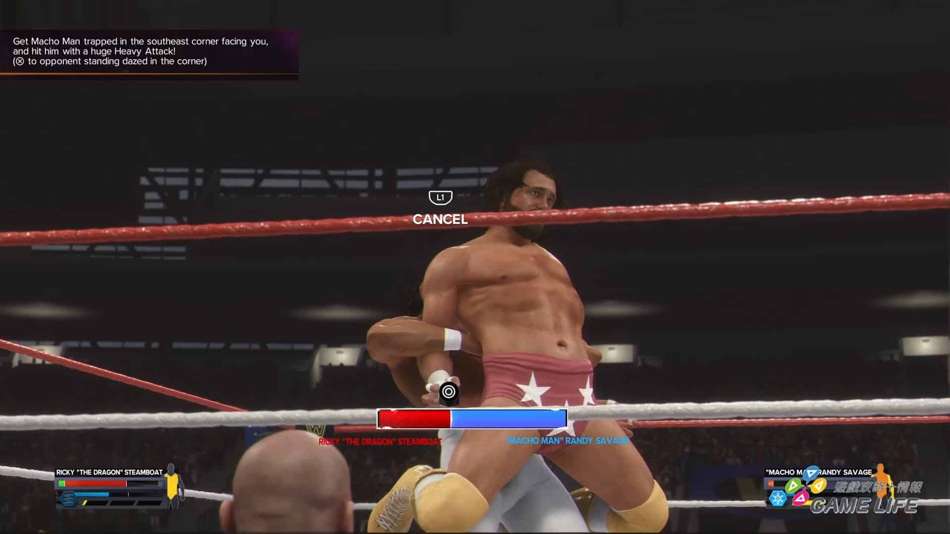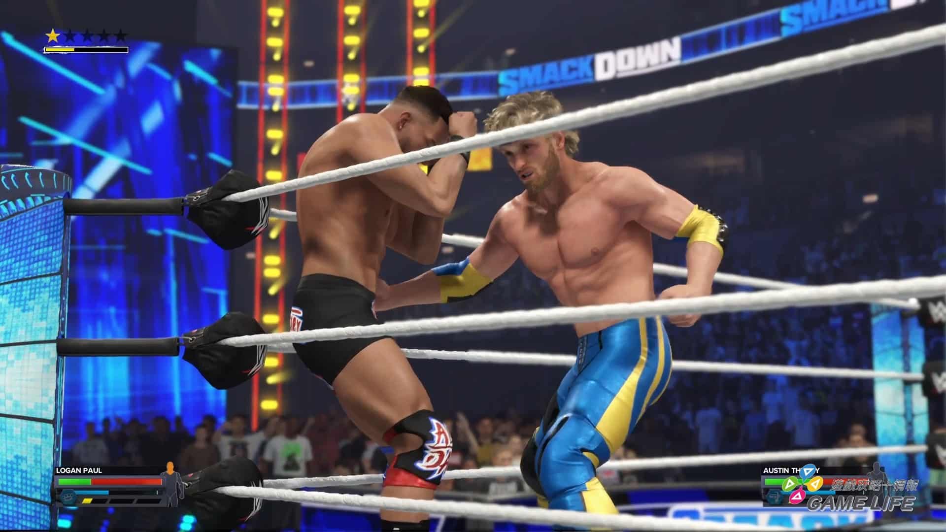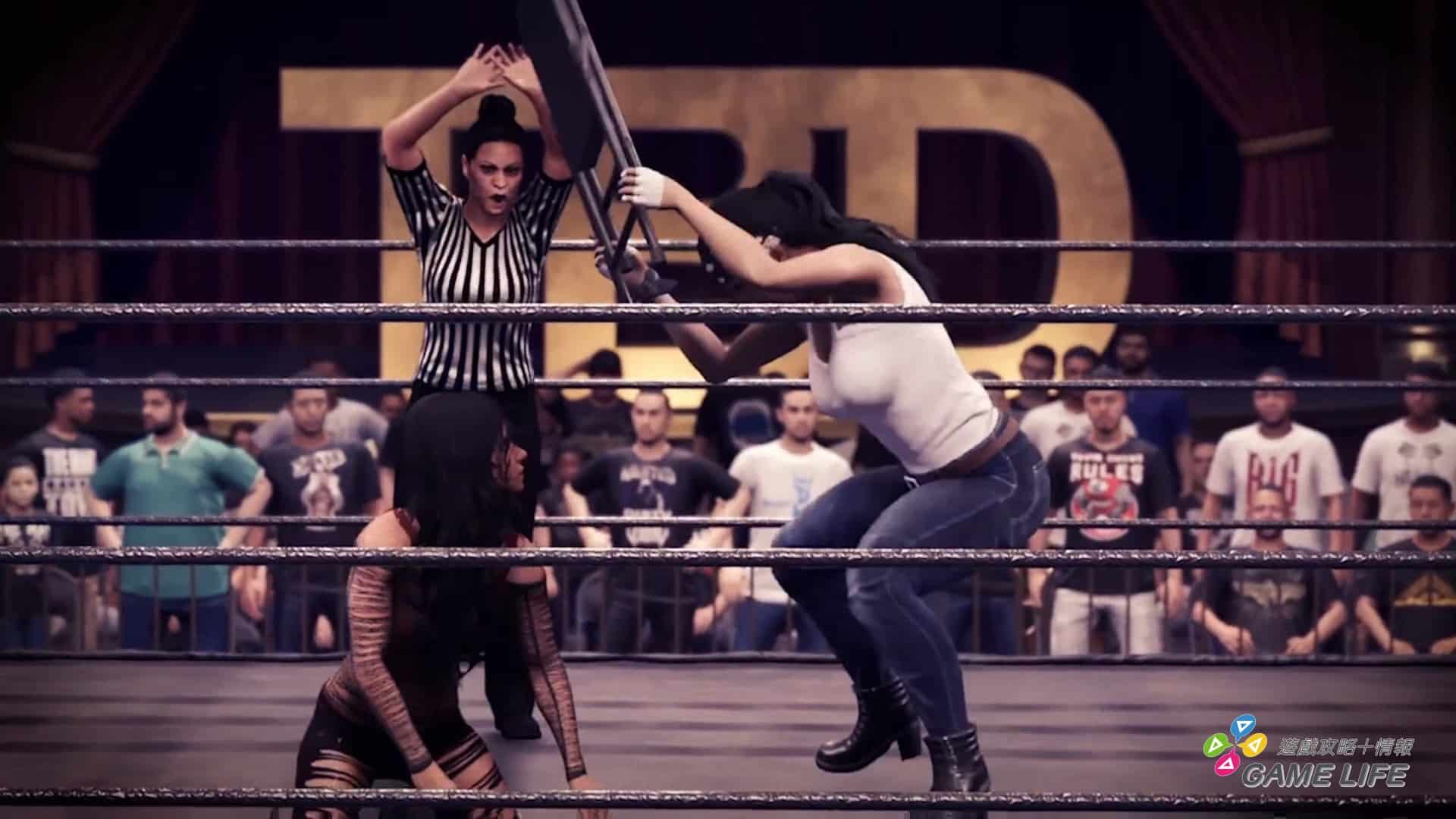 如果要讓筆者談本作最大的進步跟最給予好評的地方,那就是操作的大幅改良吧。摔角題材算是一種 3D 對戰遊戲,玩家要在擂台上使用打擊、擒拿、拋投等手段打倒、壓制對手到獲得勝利。但因為為了表現出摔角多樣化的動作跟招式,過去系列把操作弄得相當複雜難懂,甚至是方向鍵、左右類比的強度、角度都要操作細微,導致《WWE 2K》系列入門門檻很高。