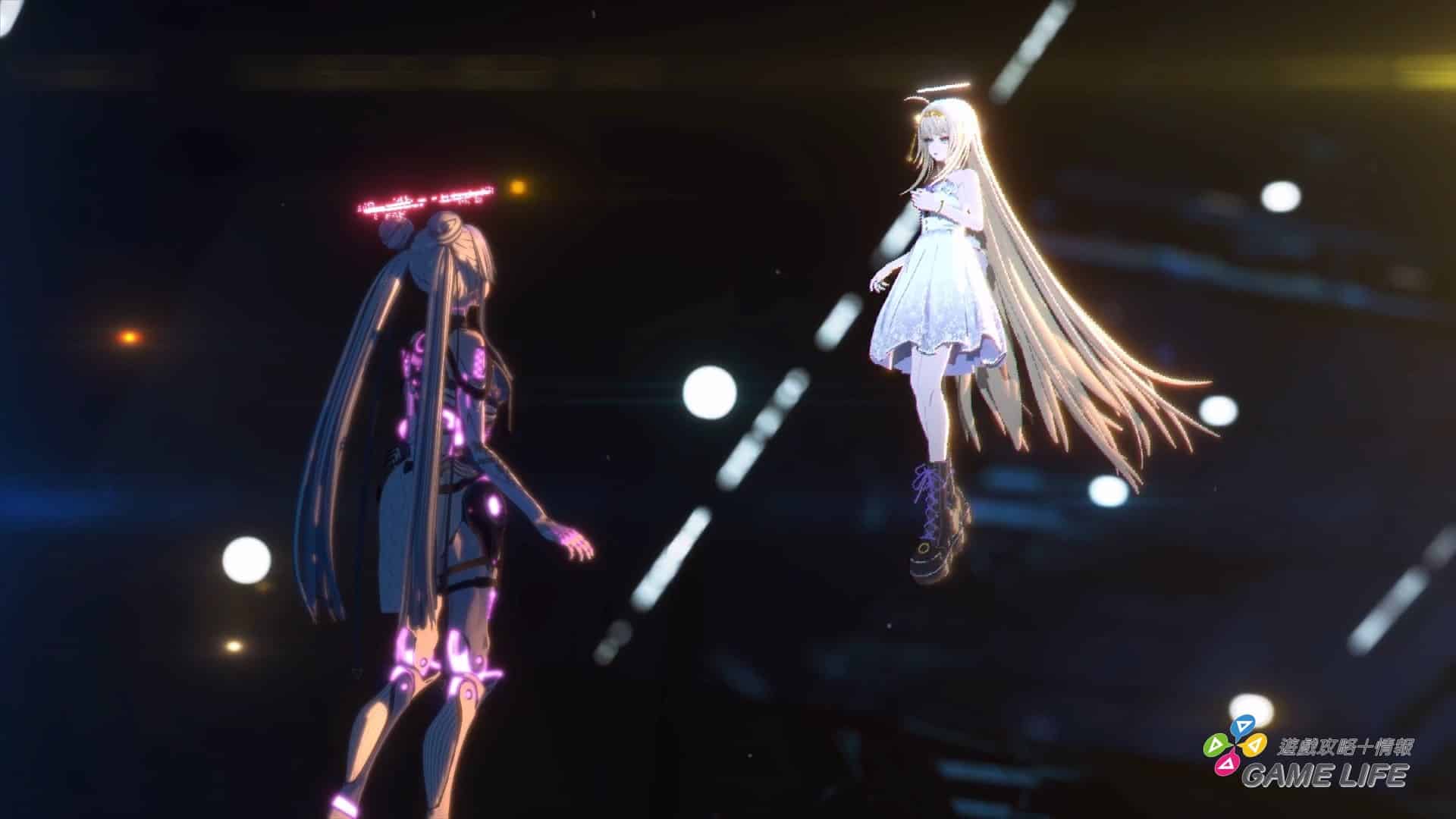 而在畫面表現上,或許是要強調科幻跟末世,戰鬥關卡就是灰暗且無機質、據點就是淺色白色交錯的虛無縹緲,相對的,各機器人身上的光芒跟攻擊特效就是相當亮眼刺眼。而劇情進展雖然有 3D 模組在演出,但基本上不會做出太複雜或太長的動作表現,基本還是人物立繪加對話框的短暫對話為主。