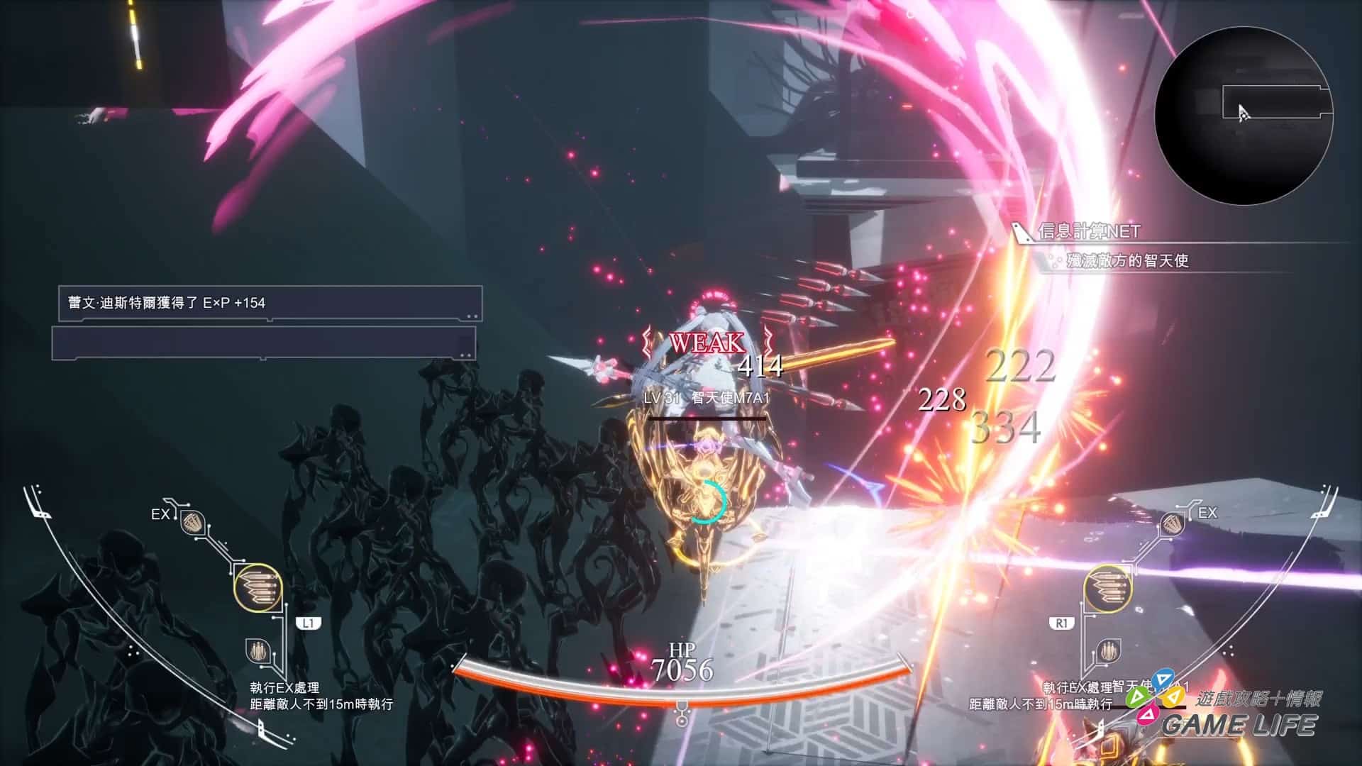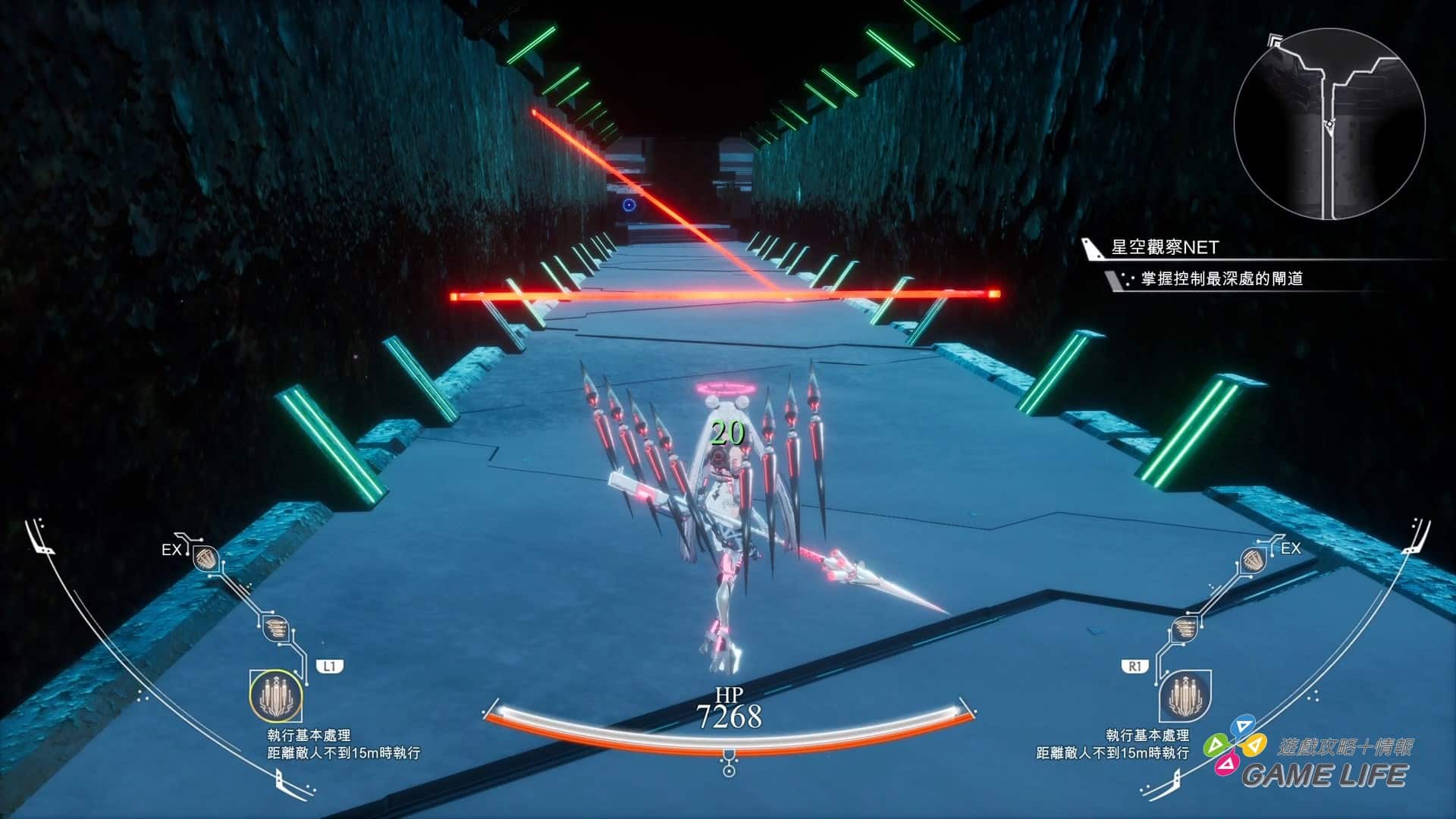 迴避跟反擊都是某種反制敵人攻勢的手段,但遺憾的是在這遊戲設計概念上都不太實用。當敵人攻擊帶有紫色光芒特效時,玩家可以擺出反擊架式去接下那記攻擊進行反攻;迴避則是敵人攻擊快命中自己時,PS4、PS5 的話就是同時按下 L3 與 R2 就能發動迴避轉守為攻。