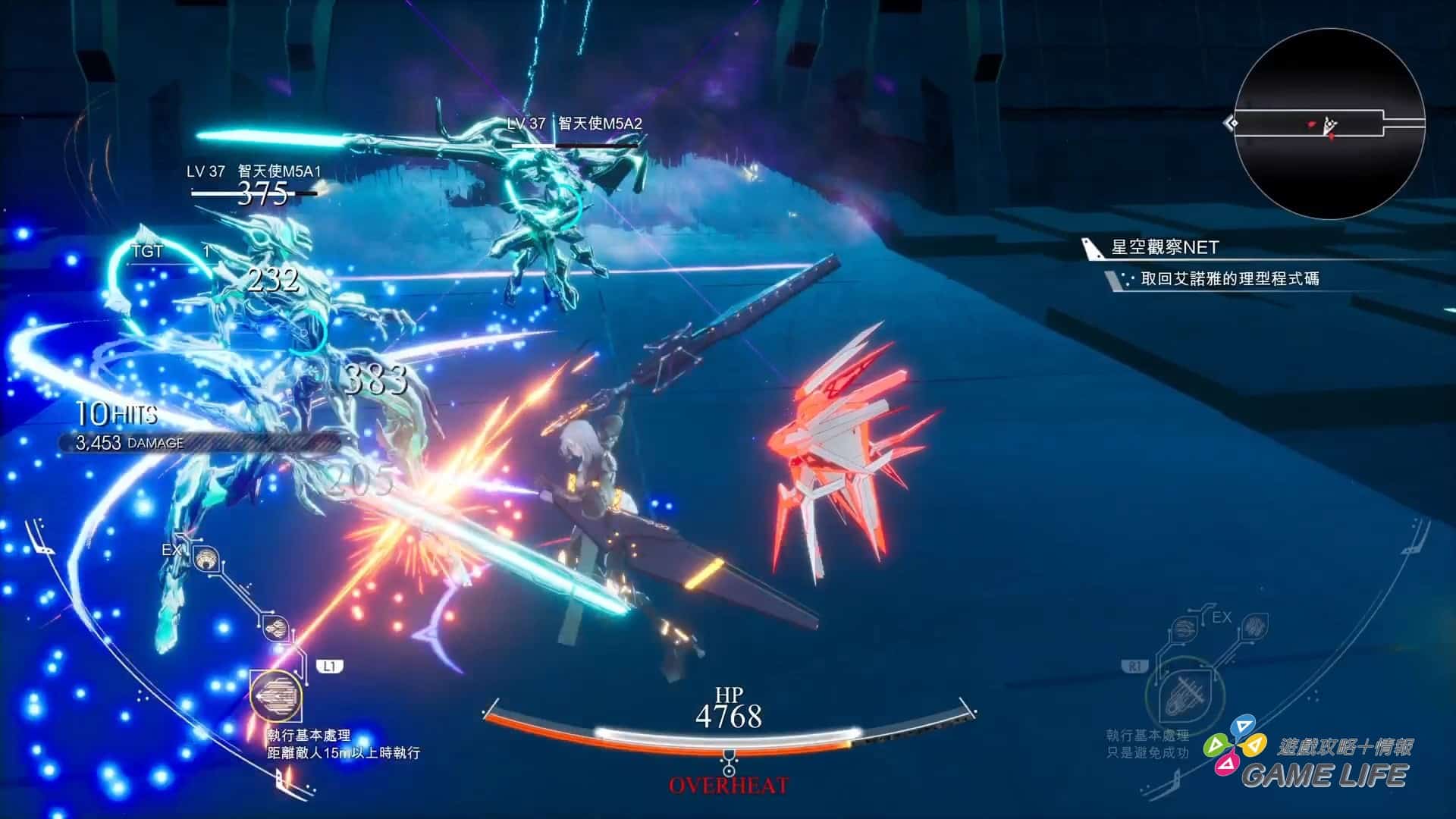 但剛也提到,這遊戲設計上,戰鬥就是猛攻,防禦手段的報酬太低,因此就算三個可操作角色性能各有差異,裝備子機能裝上很多種不同性能的玩意,結果養成概念上還是只要顧好最基本的回復手段即可,剩下重點全放在如何強化攻擊性能,到遊戲中後盤就會發現,這遊戲的戰鬥並沒有啥變化性或應對性。