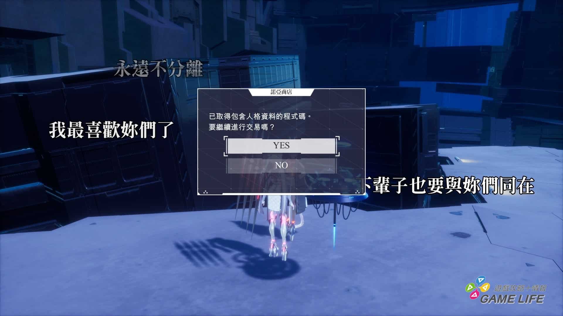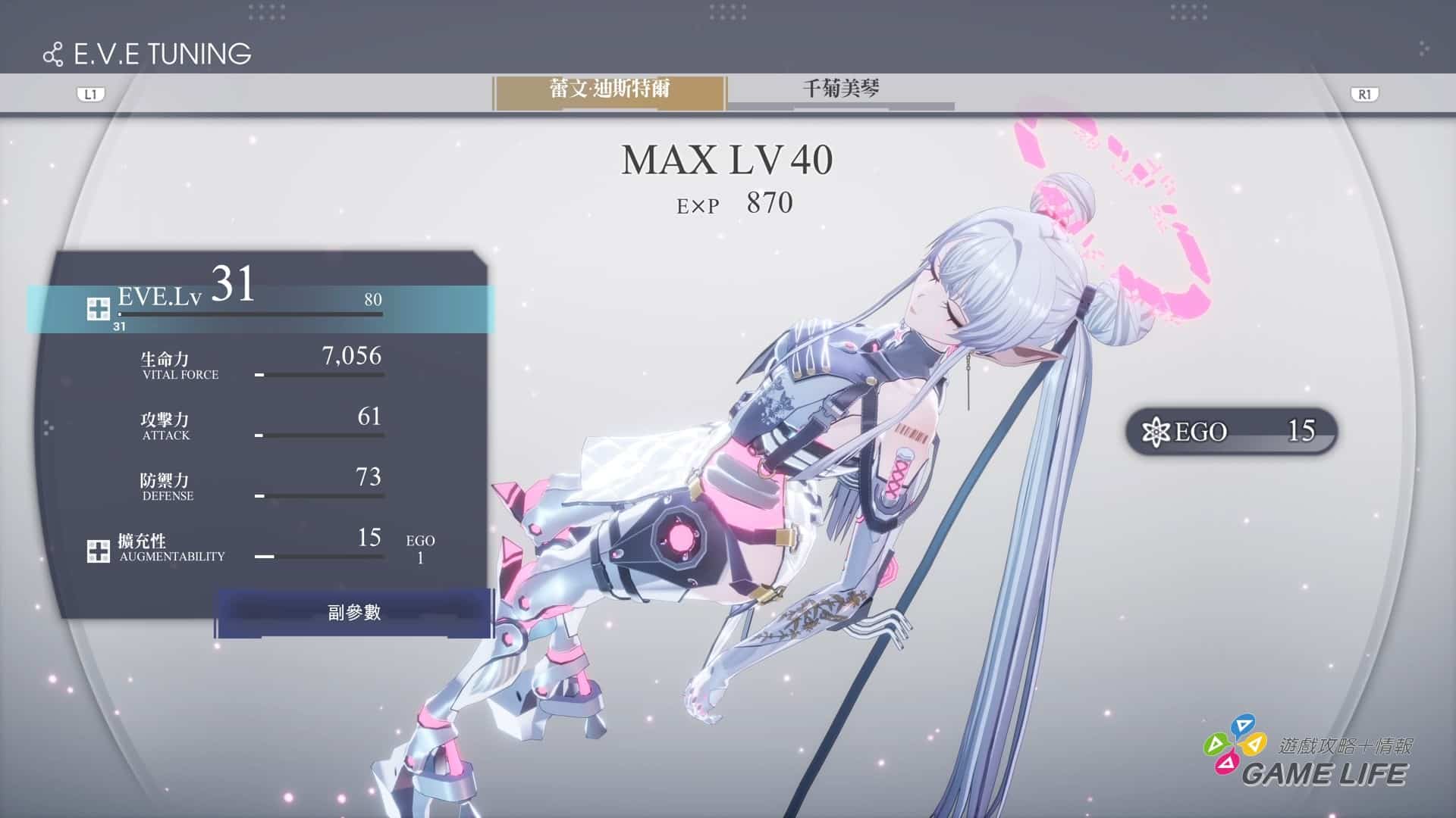 這個問題也多少影響到這遊戲的養成面,本作作為一個動作角色扮演,玩家戰鬥會累積經驗值,並且在據點能分經驗值給三個可操作角色升級。另外透過上述的茶會對話等要素,還能得到 EGO 點數,這點數用途非常多,強化援護的效果、提升可操作角色能力數值、跟商人購買子機等等。