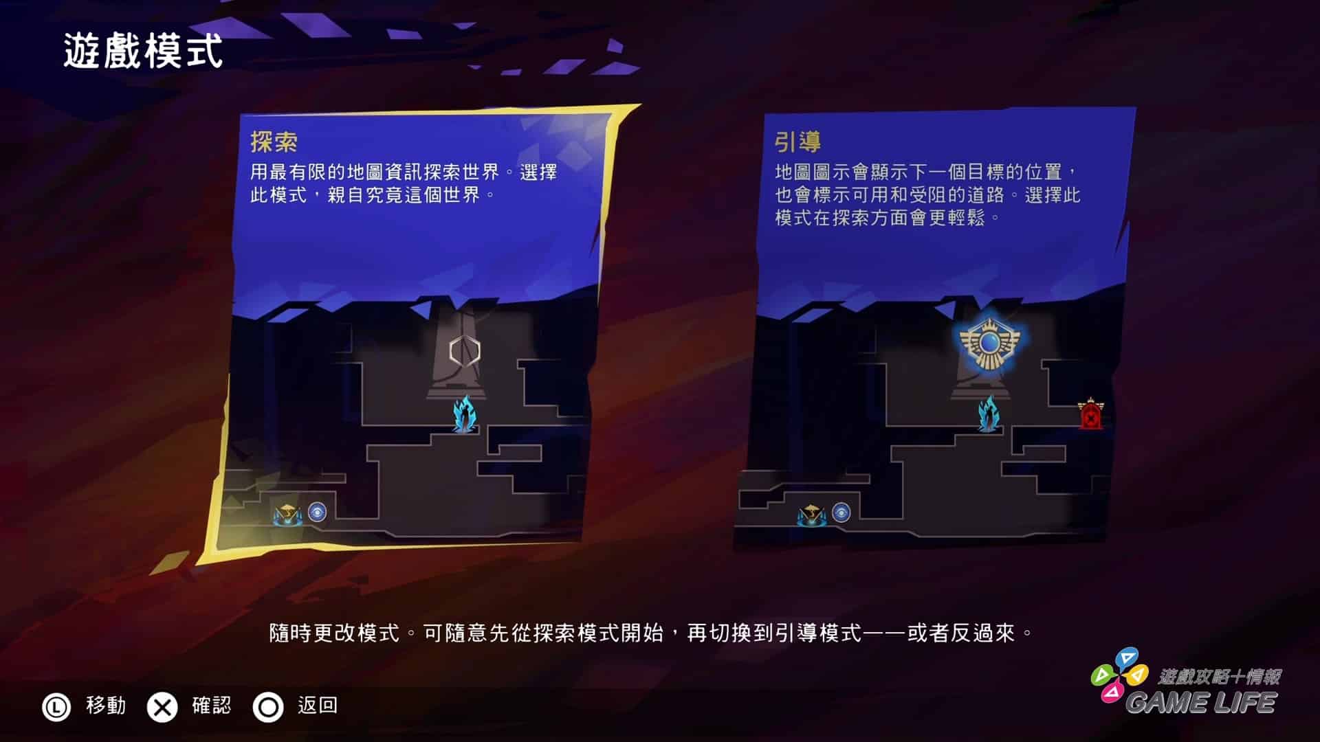 因為很多東西要玩家自行判斷,對不習慣這種遊戲方式的人來說,製作群有設計難度選擇,除了戰鬥難度外,還可以更改探索難度,玩家能從頭到尾都靠自己摸索跟記憶,也可以開啟輔助,讓大地圖至少會主動顯示下一個劇情觸發點或哪些路目前還不能通行,在初期什麼資源跟技能都缺的情況下,筆者會建議開啟輔助功能,能節省一些時間。
