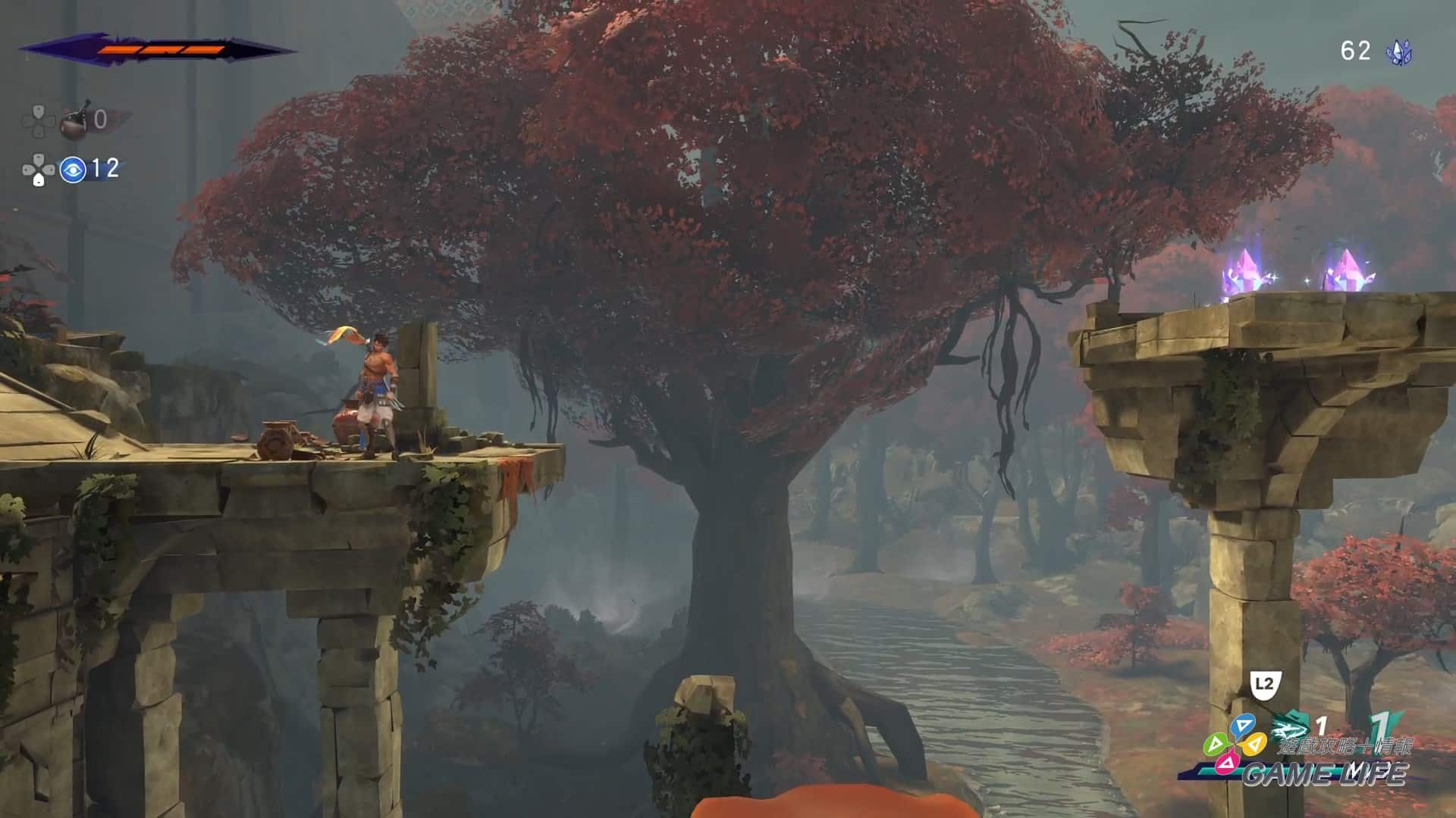 這其實還蠻難能可貴的,特別是在 Ubisoft 名下的《波斯王子》系列都以第三人稱動作為主,這回突然變回橫向捲軸,又是否能打造出豐富的內容呢?這點,Ubisoft 採用了非常單純的方式,不用早期的關卡制,而是採用類似「銀河惡魔城」的探索制,整個遊戲的大地圖就呈現在眼前,玩家能自由探索並依照自己手邊的能力跟道具,來自行推斷該怎麼走跟攻略順序。