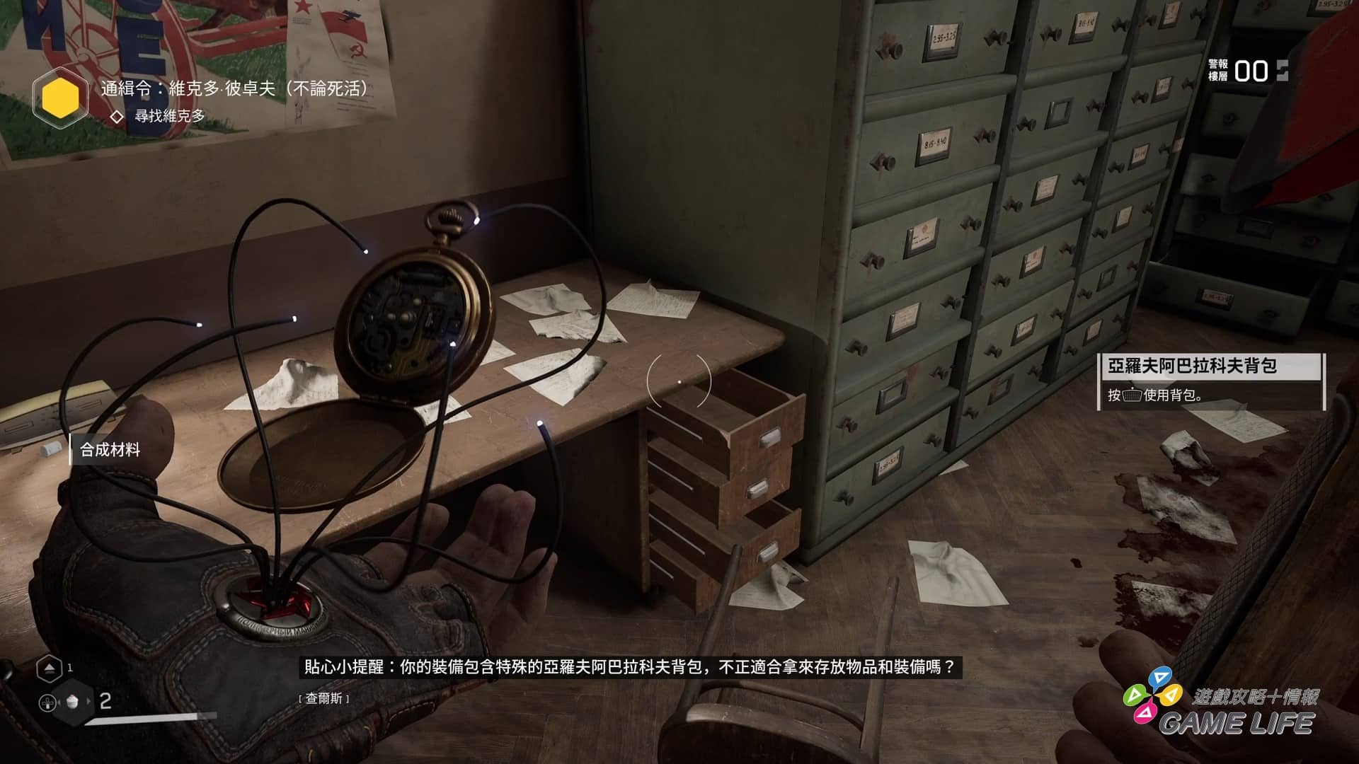 探索面上,遊戲有著很親切的設計就是會標示主線觸發地點在哪裡,而且還很細心地分段式標示,不要一次就標出一段劇情的終點,例如電梯缺電,系統標示就會先標找鑰匙進去目標房間的點、再標要從哪裡去目標地點、最後再標起動電源的點,所以通常主線探索上不太會迷路。