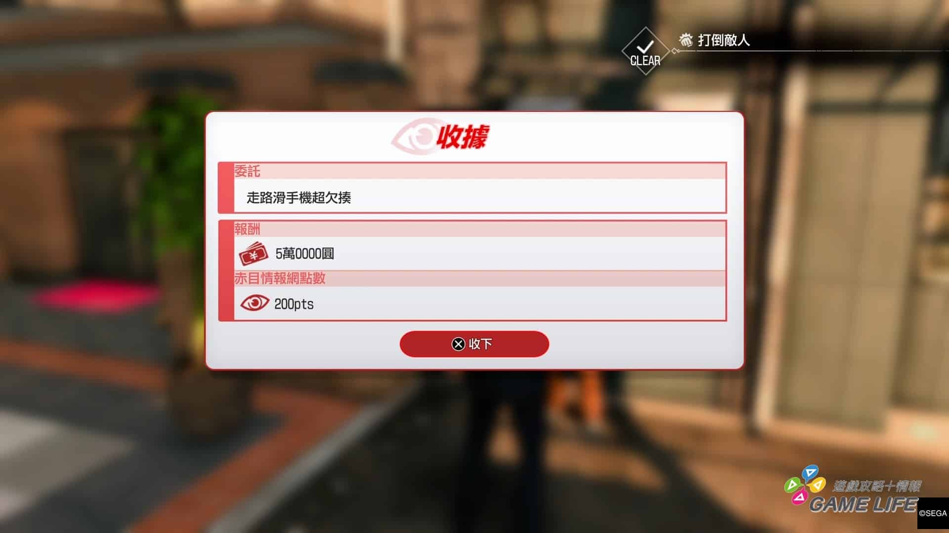 特別是很多都只是特定地點打幾隻小角色,更甚者就是跑腿送東西、拍照,連沿路發面紙都要做,如果說佔遊戲時間了不起三分之一的話可能還好,但快要一半的話,就會讓玩家覺得自己到底是傳說中的黑道?秘密組織的特務?還是只是個跑腿的打雜。這部份就真的是本作較為可惜的地方。
