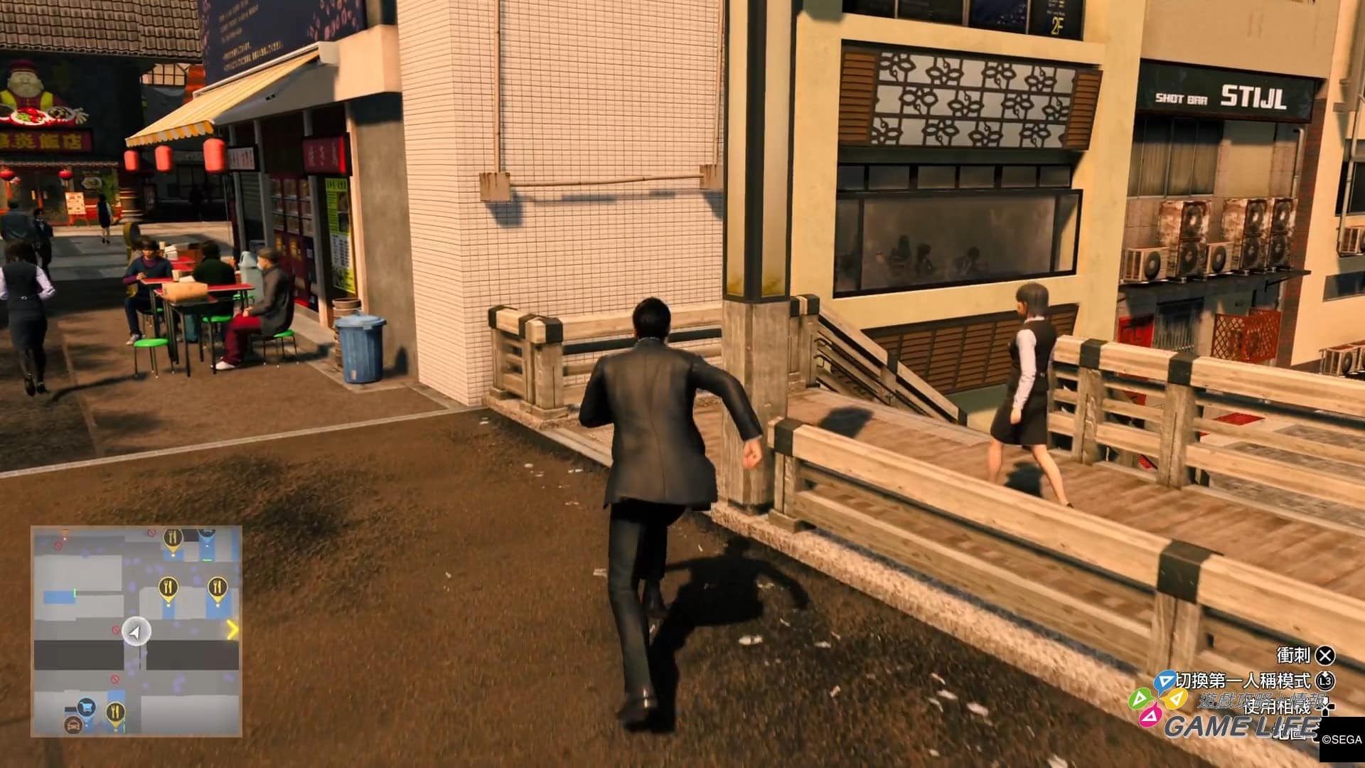 本作的主軸劇情算是相當地短,玩家有辦法快速衝刺的話,最快估計可以五、六個小時就打完主線,也因此過程中塞了相當豐富的支線內容給玩家,這是優點也是缺點,容後再述。總之基本遊戲的推進方式跟過往《人中之龍》系列相同,在廣大的城鎮街道上閒晃,四處玩樂到自己有那個心情時,再去劇情觸發點推進劇情。
