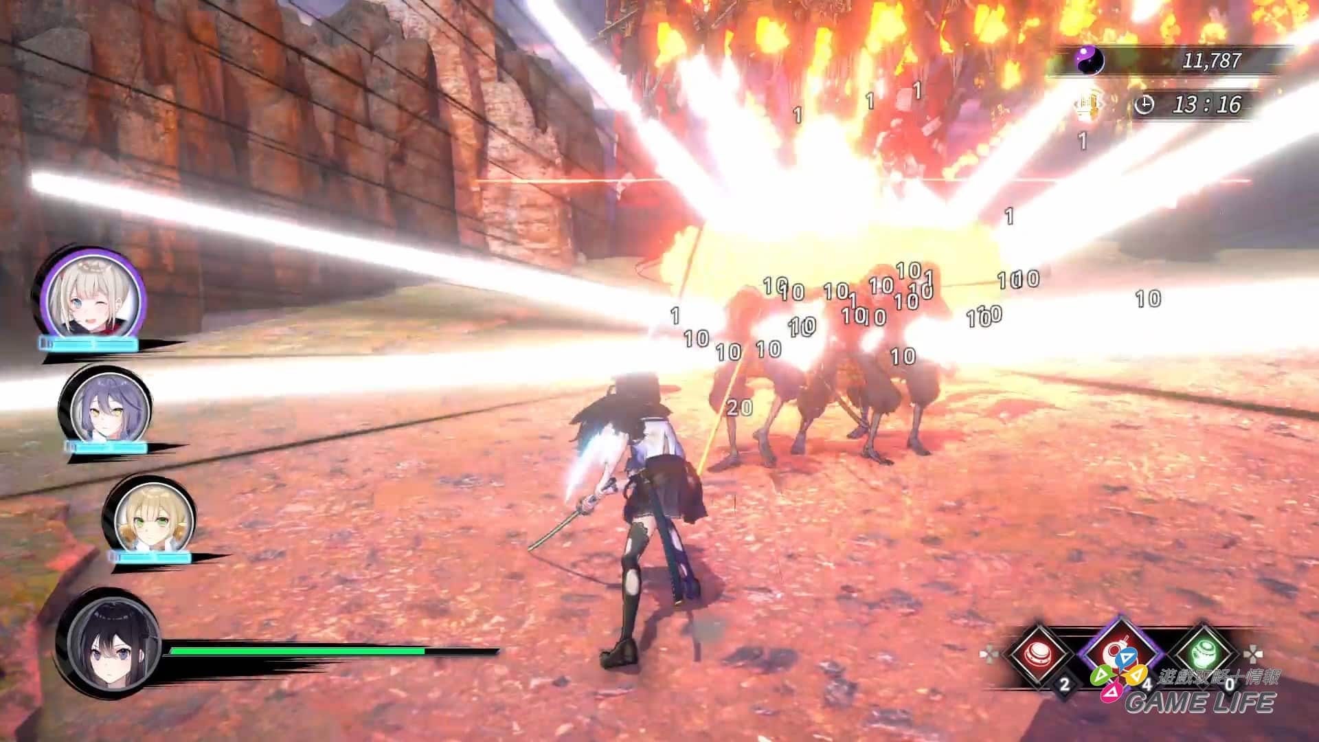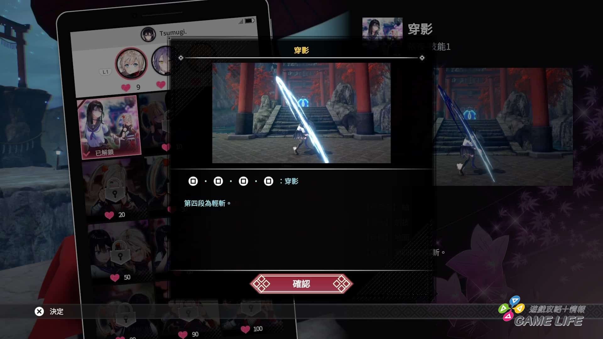 關於本作的成長要素,主要就兩個,好感度跟武器強化,角色之間並沒有什麼經驗值等級的問題。平常闖關就是累積資金,再花資金強化武器等級增加戰力,隨著關卡進展各角色會獲得新武器,但不同武器裝備時的效益更有差別,玩家也必須斟酌自己的戰術判斷要花錢在哪把刀口上。