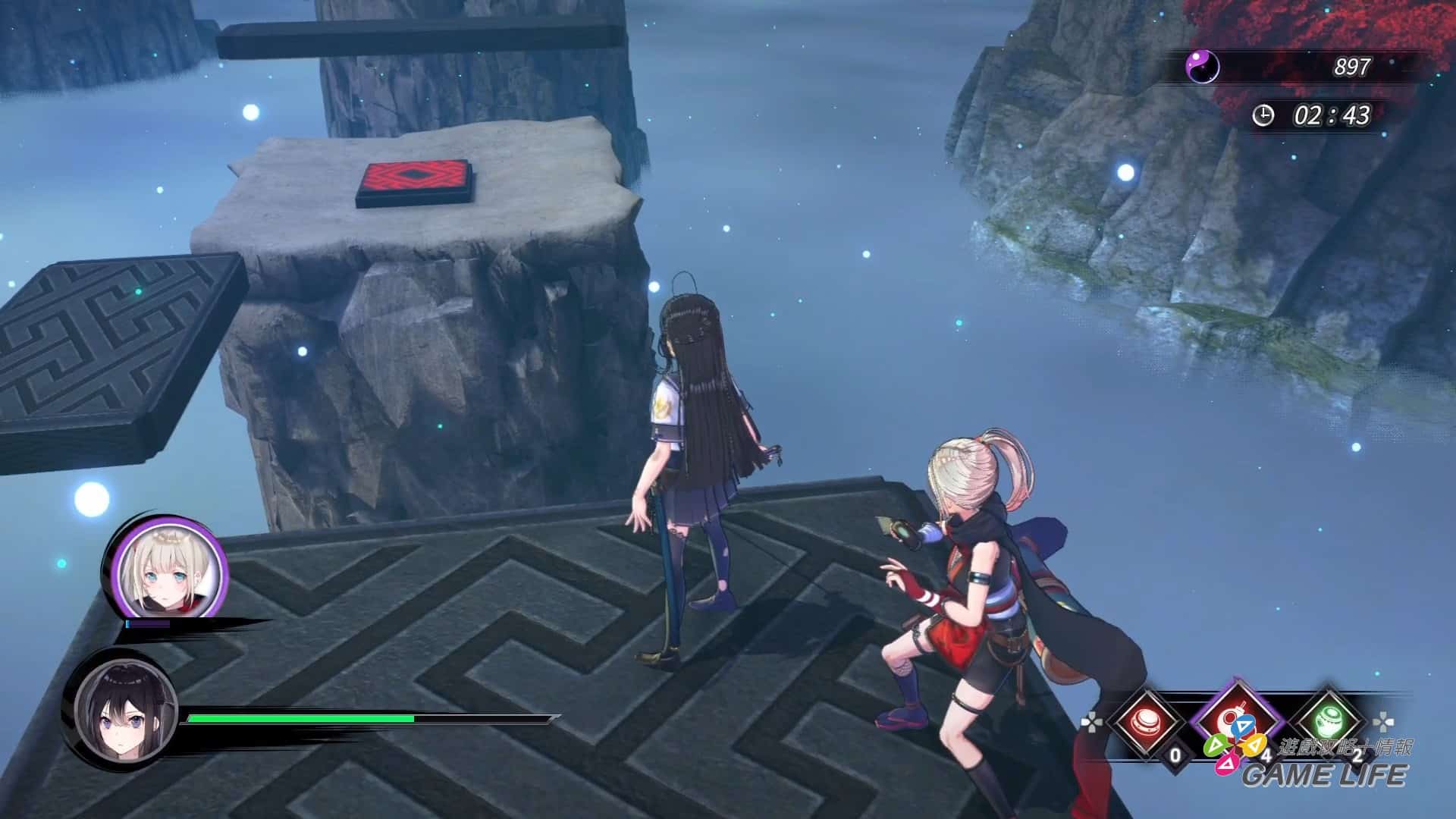 三個夥伴除了施展忍術外,還有各自的獨立動作,例如設置道具、抓起道具拋投等等,這個動作要素除了能在戰場上擺炸彈或地雷有助戰況外,同時還具有解謎要素。特別是支線劇情開放的「泡沫空間」,這空間戰鬥要素較少,主要都是讓玩家挑戰動作解謎,難度雖然不高,但有些刁鑽的設計,這部份是否覺得好玩要看人了。