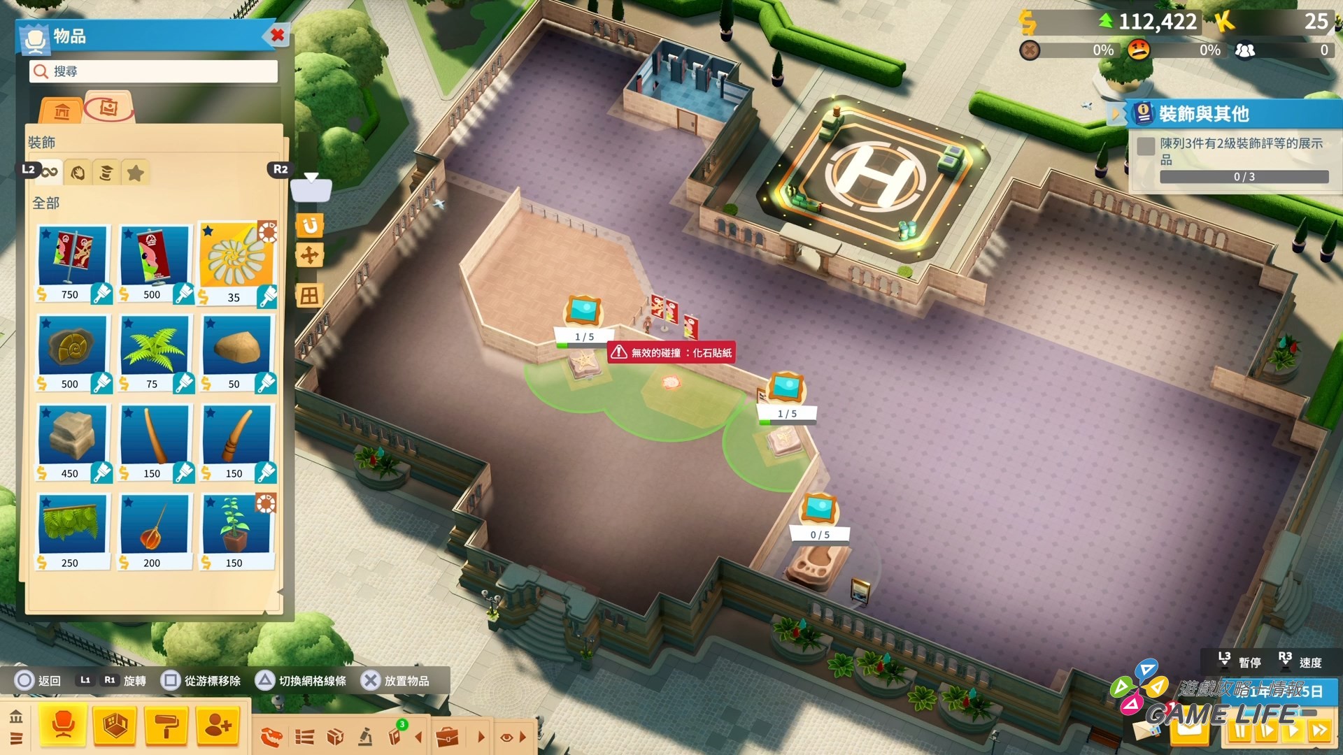 操作上,這種需要劃分空間、擺設物品的遊戲方式,PC 滑鼠還是比較方便,特別是像要在牆壁邊設置物品,用手把類比設置起來很容易偏到無法設置的空間;當然家用主機版在每一個選單的按鈕都算是有標示清楚,一顆按鈕就能立即開啟各方面的選單,也算是盡力設計得很方便操作了。