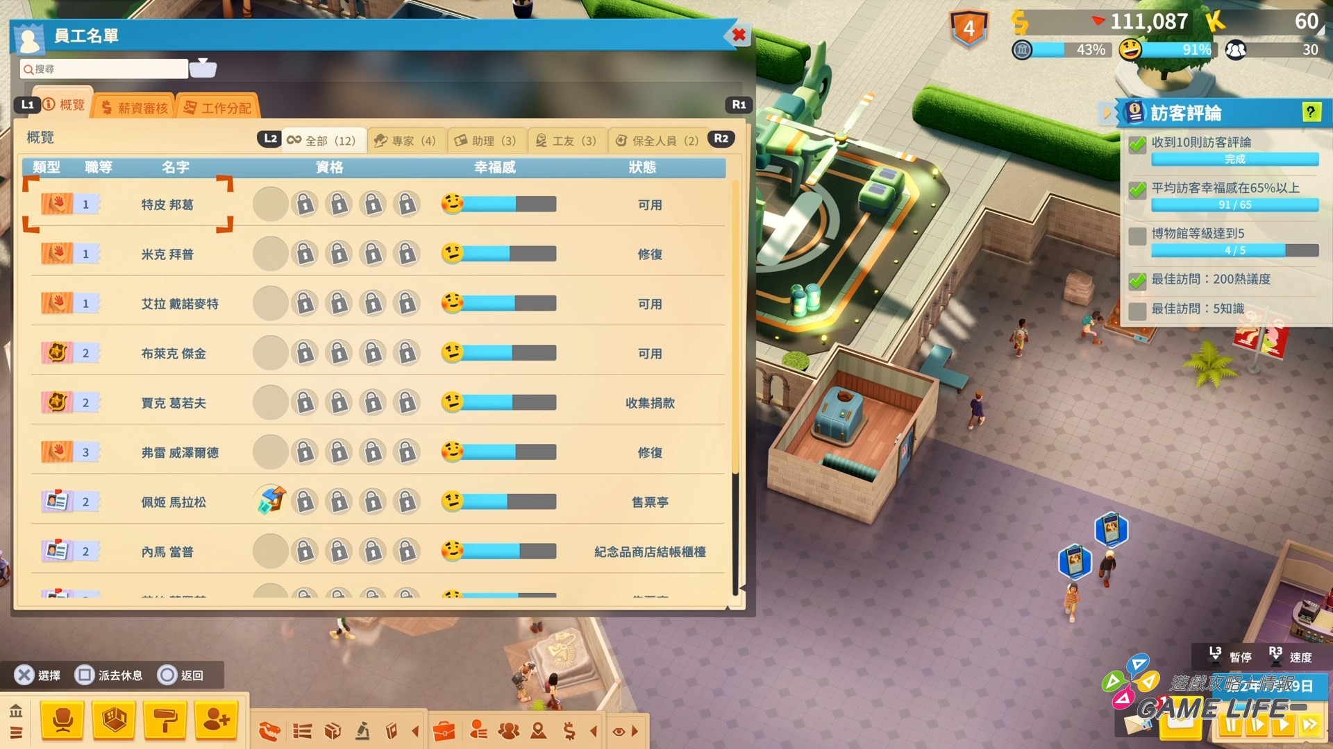 總結來說,這款以俯瞰視角進行特殊設施經營的《雙點》系列最新作《雙點博物館》,在經營模擬類中算是相當好入門的一款,除了有明確的教學跟指示外,難度不會設計得過於複雜且美術風格也較為大眾向,另外也支援繁體中文跟加入中文語音,即使是過去沒碰過模擬經營作品的玩家,也能從這款當中,慢慢了解這類型遊戲的樂趣是如何「建立」的。