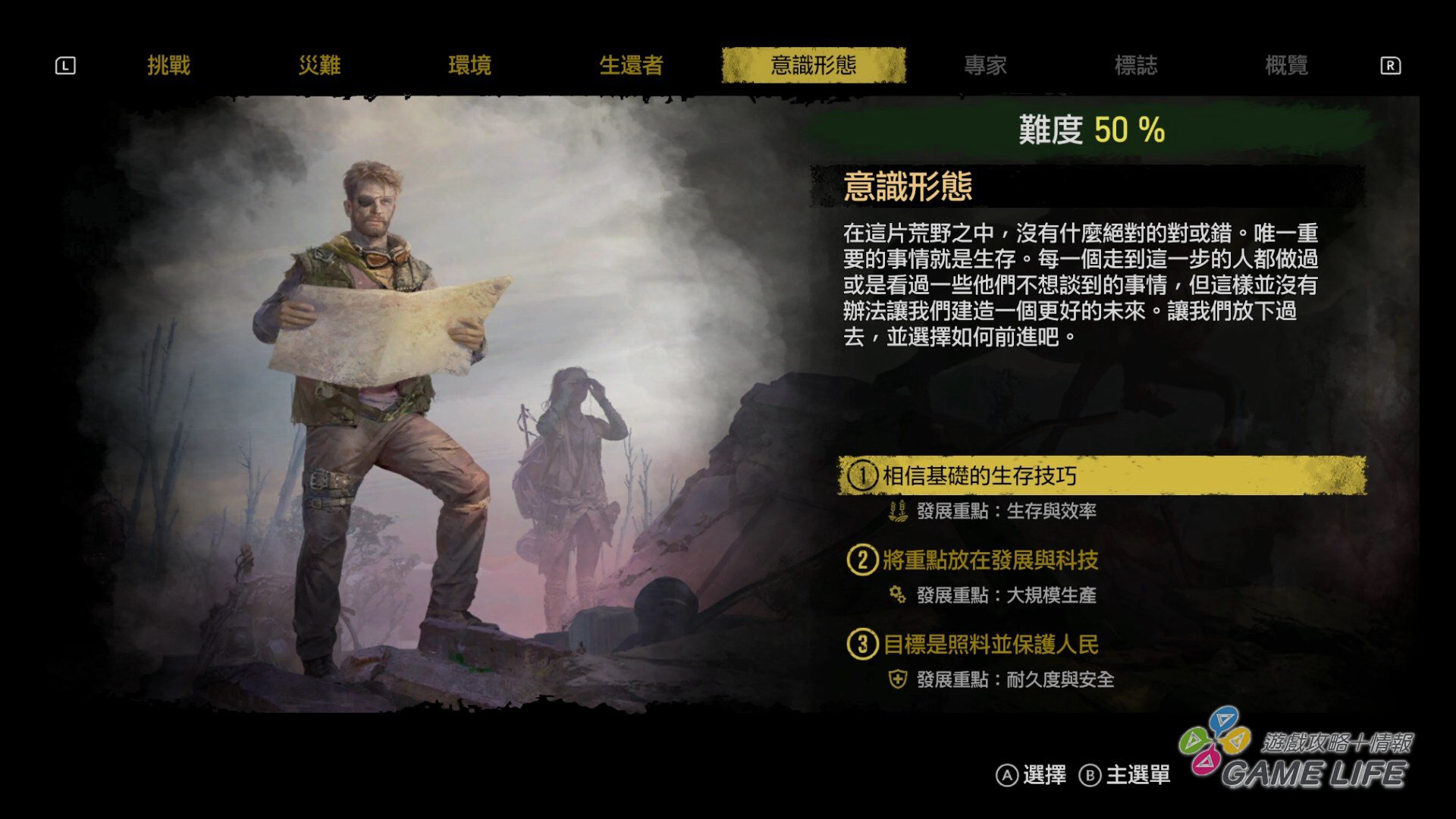 在過去報導中筆者也一度提到,本作雖然有教學模式,但其實沒有很詳盡,不如說是「教學指示」,一開始時會先請玩家設定遊戲中的環境狀況,例如土地肥沃度、資源殘存量等,說穿了就是決定這輪的遊戲難度,筆者會建議第一輪就先挑選最簡單的狀況,先熟悉熟悉環境。