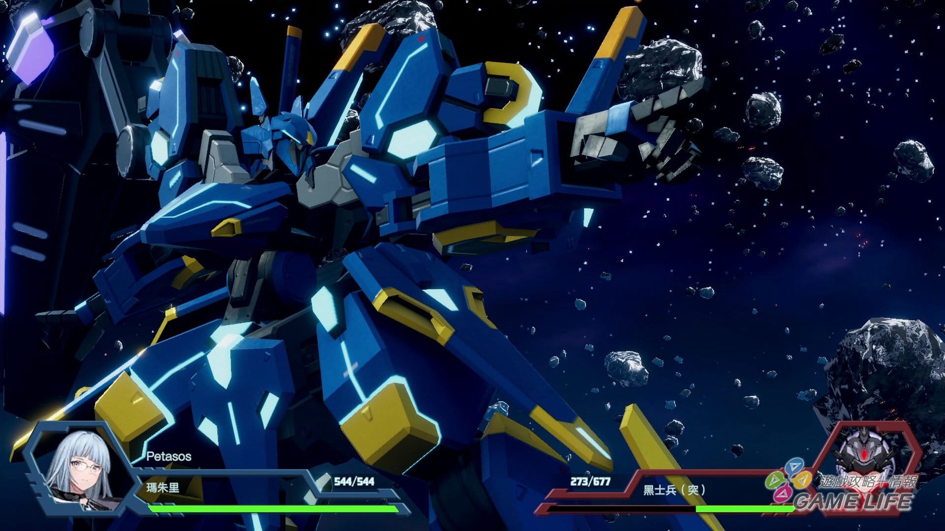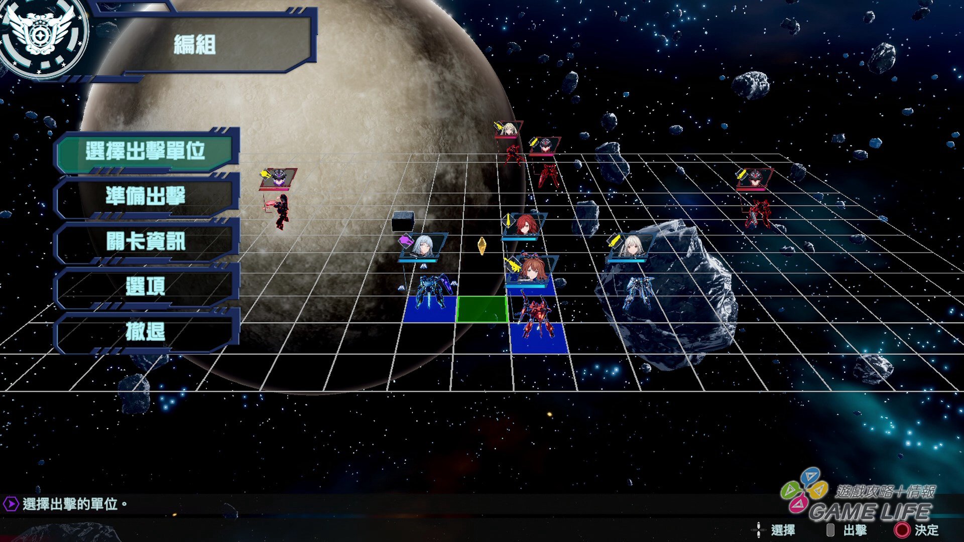 戰鬥系統的部份倒是超出筆者的想像,基本概念是一般戰棋遊戲沒錯,在宇宙地圖上展開棋盤式的作戰,多半目的都是消滅敵軍;戰場上所有機體會依據自身的速度值排出行動順序;玩家需要活用機體與武器性能跟射程,在盡可能別受到敵方攻擊下,擊墜敵機。武器還有屬性跟射程的差異,主要就是藉此編織出戰略性。