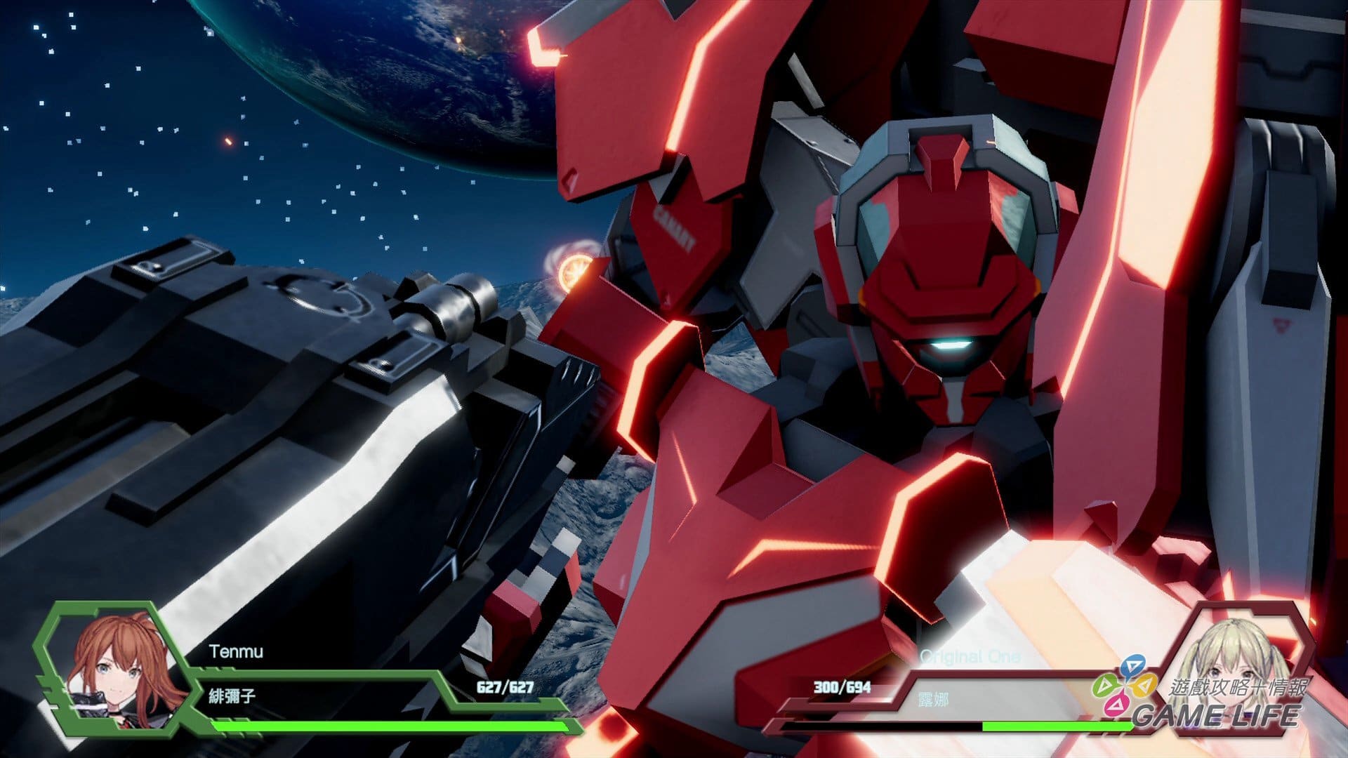 而最讓筆者驚艷的就是戰鬥演出的部份,本作機體間作戰都會有 3D 等身大機體的戰鬥動畫,且平均一種武裝會有兩種左右的戰鬥動畫,而且就算是用 PS4 玩進入戰鬥演出的讀取時間也很短,戰鬥演出方面可說是讓筆者最感滿意的地方。但也有可惜之處,或許是作為原創作品設計機體很費力,本作的機體種類、關卡種類、地形要素都相當地稀少,就算是設計優良的戰鬥動畫,總是在看只有色彩差別的機體與大同小異的地形戰鬥,也是會膩。