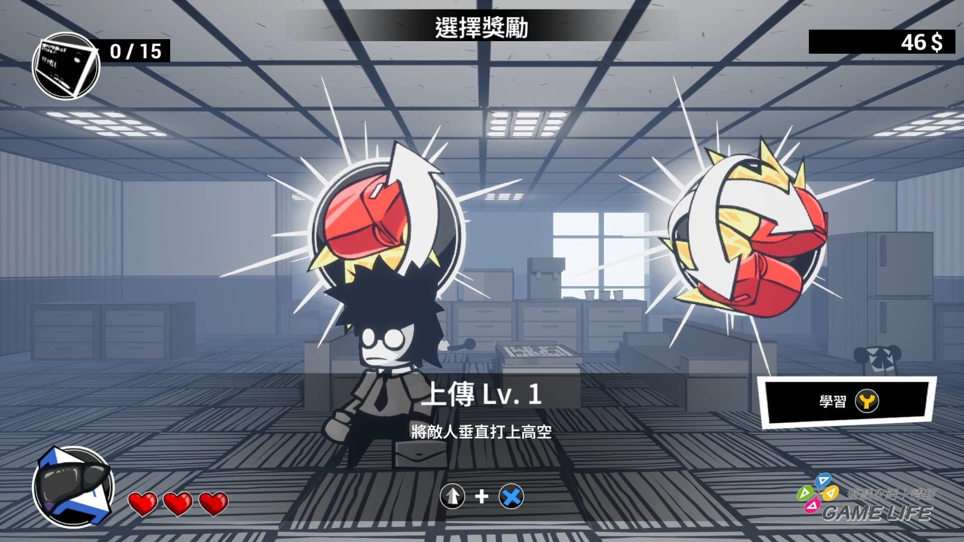 最一開始提到的 Roguelite 元素,是指在突破各小關時,系統會提供兩個強化選項給玩家選擇,玩家能二選一強化自己的戰鬥性能,例如空中攻擊多打一下、防禦後能立即反擊、射擊武器性能提升等等。給玩家一個隨自己喜好打造戰力的自由空間,前面也講到,這遊戲隨著敵人的種類變多,應對手段也會增加,這方面的強化是要依喜好還是依關卡狀況去挑選,也意外地是個難題。