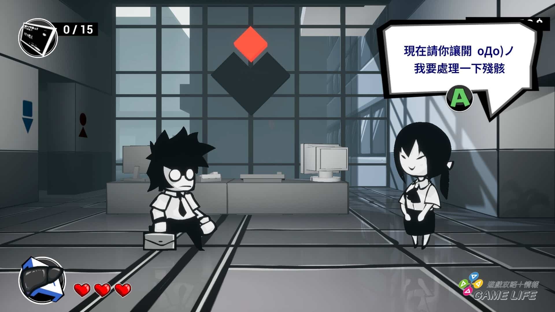 前面講到「終結技」,或許會讓人以為這遊戲很暴力血腥,其實並不會,這點某種程度上要歸功於美術風格。本作以黑白色系為主,除了一些紅綠燈圖示外,多數配色都是 Q 版三頭身風格的黑白色人物,所以整體氣氛就像是所謂的「Comic」,比起寫實擬真,更接近詼諧幽默。