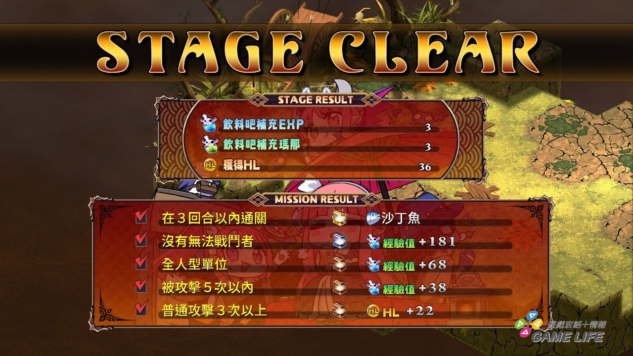 作為新要素,本作過關結束時多了一個「MISSION」,這是來自手機遊戲版《魔界戰記》的系統,各關卡都有設定例如一定回合內過關、以少數精銳挑戰等挑戰條件,不強迫達成,但是達成能在過關後拿到好東西。這個要素也是刺激玩家挑戰慾望的一種,特別是這遊戲在高難度關卡下可說是容錯率 0,在那種情況下還要去挑戰「MISSION」,玩起來就會特別需要動腦筋。