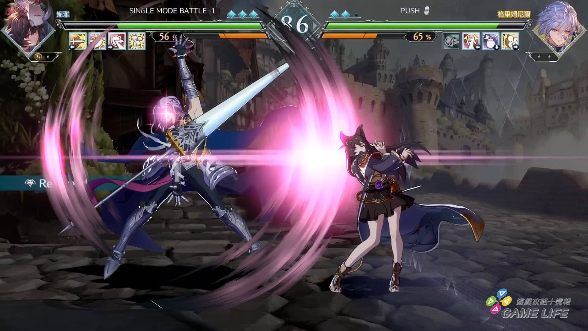 其次,本作還加入了一些簡單的解說,介紹各角色近中遠距離下,用什麼普通攻擊可以牽制對手、各角色也有方便的衝刺攻擊來活用,最後就是 Chain Combo 的概念,所有角色基本輕中重攻擊三連按都能構成連段,剩下就是去思考如何搭配指令技維持跟收尾,或者是如何對手在浮空跟在角落時進行追打,也因此,新手要研究、要背的項目就會減少很多,且本作盡可能排除太複雜的指令輸入,像 Djeeta 要輸入多個指令才能打完的超必殺技也變成一個指令到底了,新手可以投入實戰要做的準備就會變少,相對比較能體驗格鬥遊戲該有的樂趣。