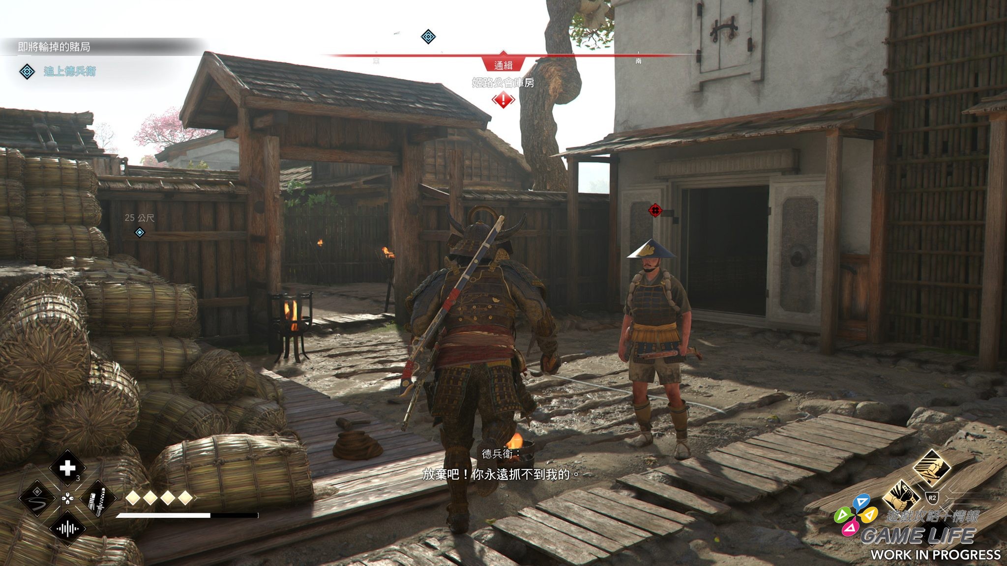 過去宣傳也簡單提過,彌助與奈緒江在戰鬥上面的性能有差距,實際遊玩也能感受明顯的差距。本作的戰鬥要素算是之前系列的改良,攻擊、迴避、防禦、投擲或射擊,這幾個基本動作外加技能與道具的運用。而彌助與奈緒江最大的差別就是防守性能了,以這次試玩的難度,奈緒江可能吃個兩三發攻擊就會戰死,彌助大概可以挨個六七發攻擊左右。