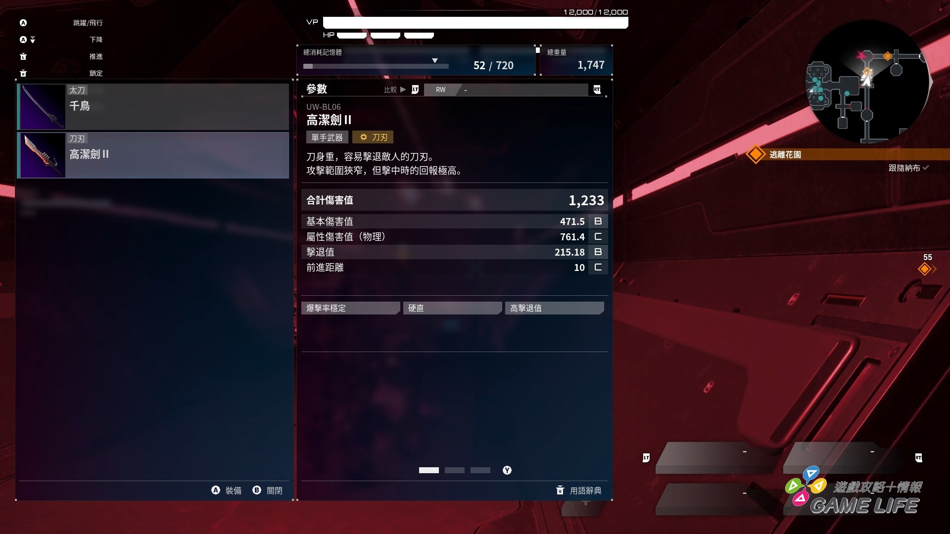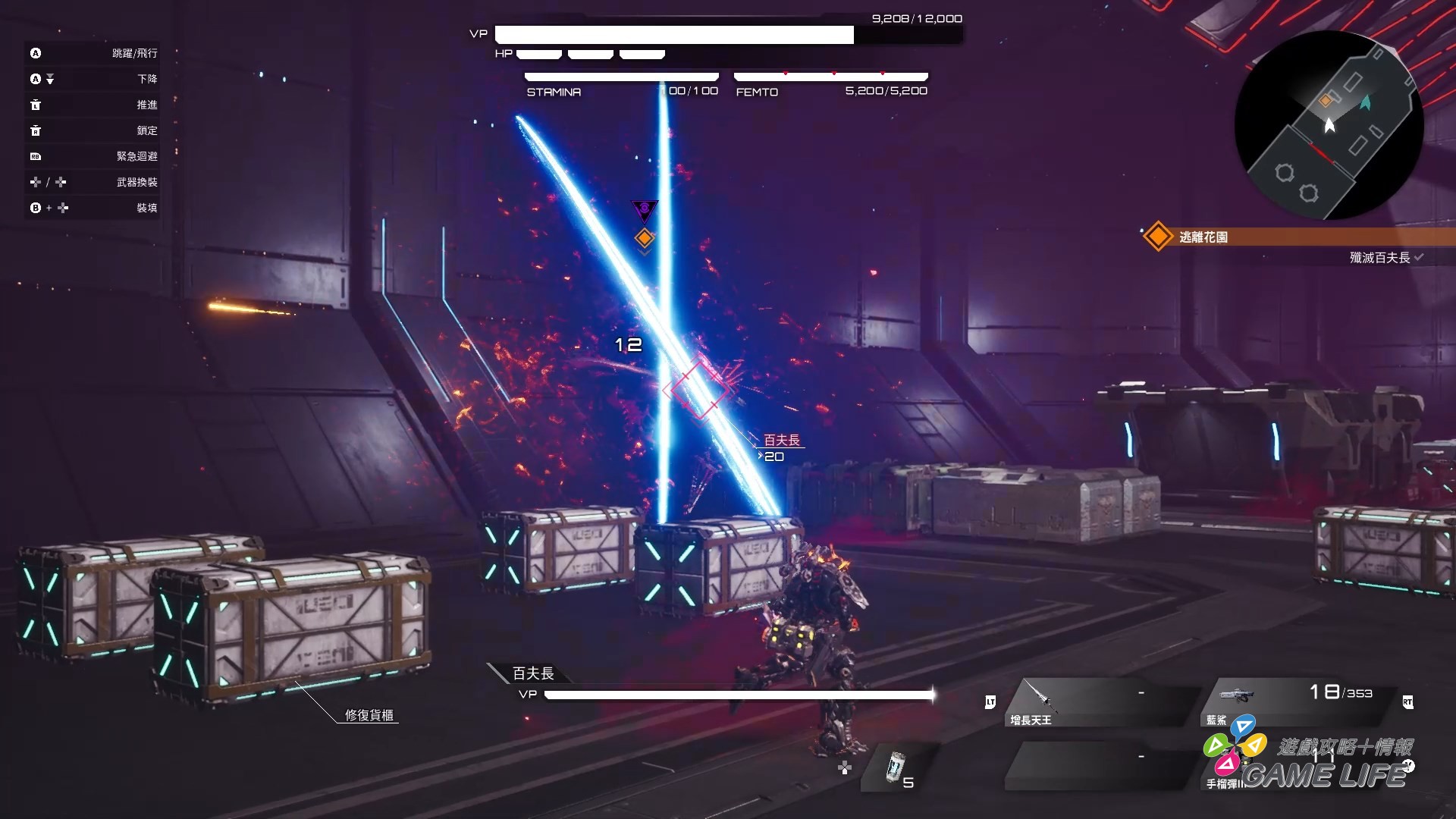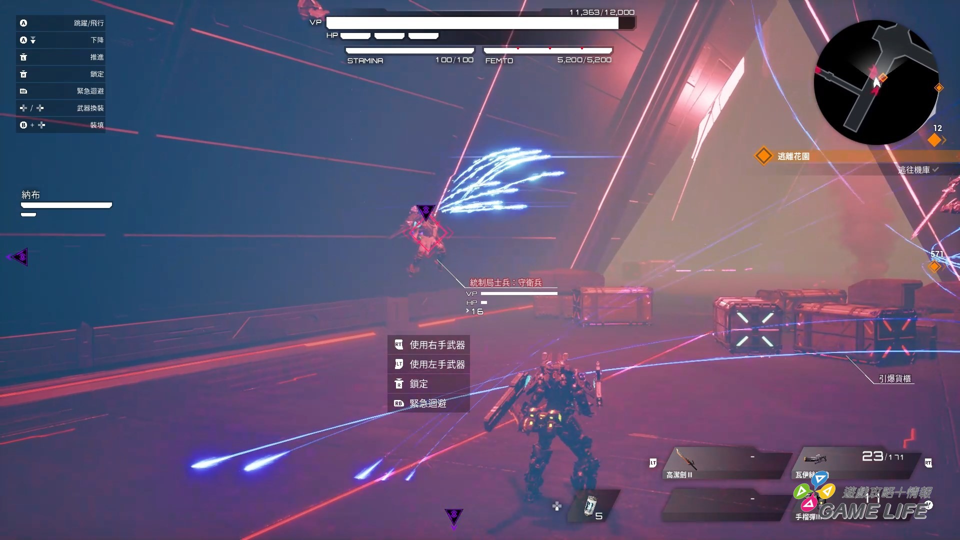 由於是能多種裝備的動作遊戲,操作會稍微複雜一點點,左右手武器、副武器、回復、切換武器、充填子彈、迴避、跳躍、飛行等等,戰場要是一混亂起來就會操作相當忙碌,幸好這遊戲支援自訂按鈕,玩家可以在初期教學關卡後,更改按鈕設定找出自己最順手的操作方式,這個部分有沒有注意到應該對戰鬥的遊玩感受會差異相當大。