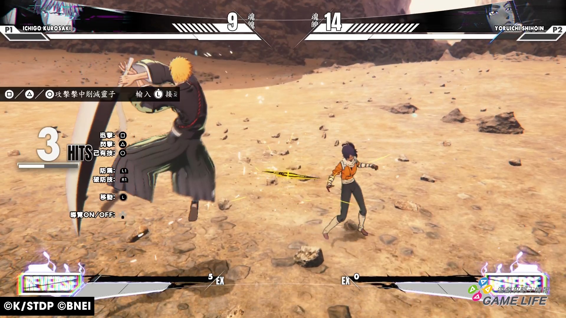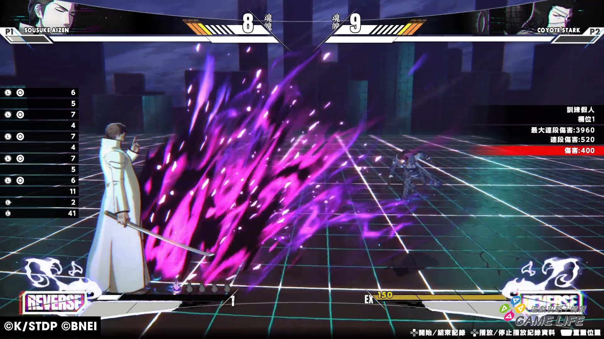 這遊戲的戰鬥步調算是相當慢的,不光是敵我周旋時的節奏,還有人物血量的設計,對戰類遊戲多半就是人物的計量表就是血量、氣條。這遊戲不是,如果以其他對戰遊戲來比喻,這遊戲就是人物有兩條血量,平常戰鬥先削除基礎的血量,等削到差不多就可以用靈魂破壞技去削減第二條代表「靈魂」的血量,要把這「靈魂」全部打到 0 才算勝利。
