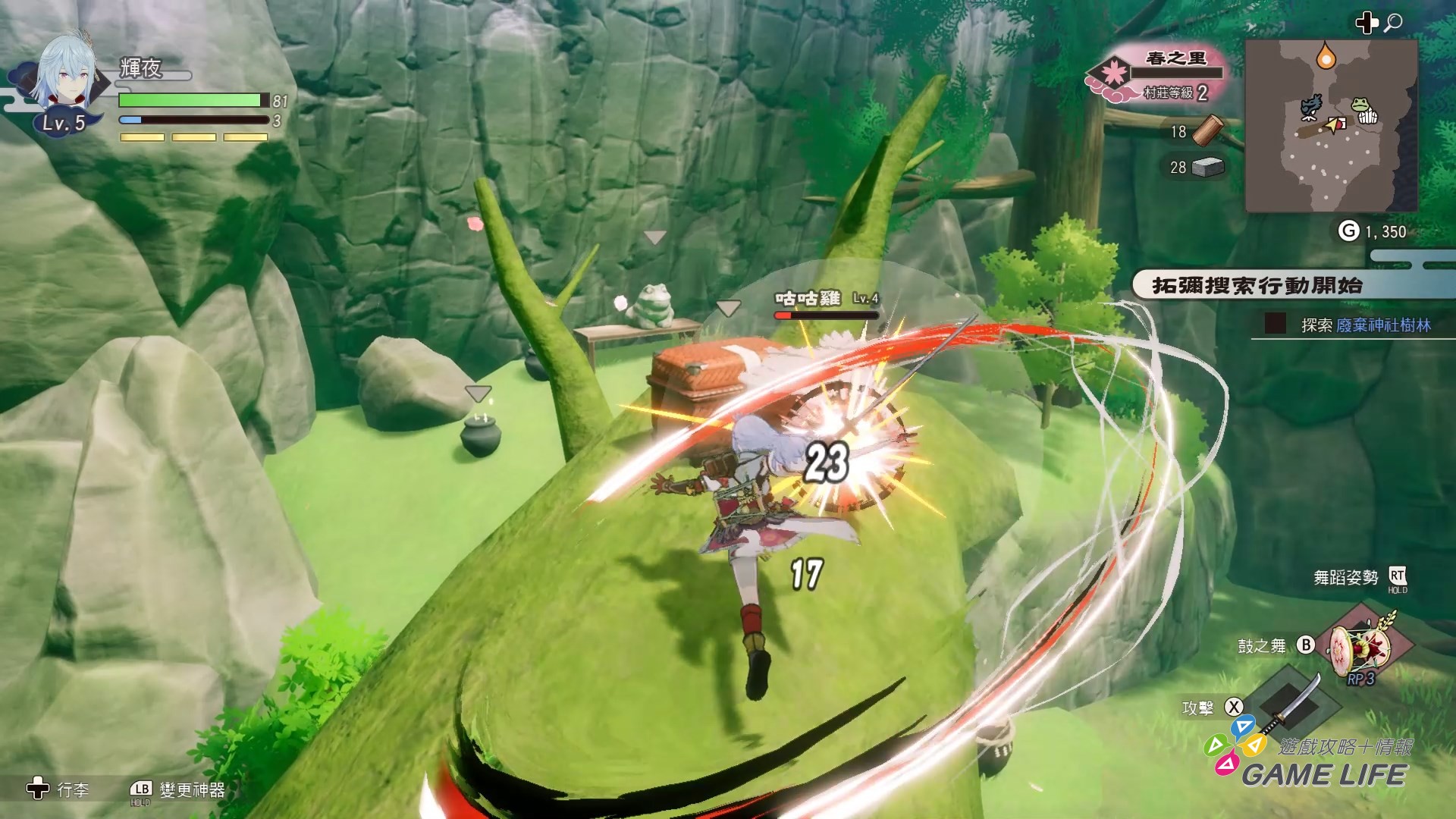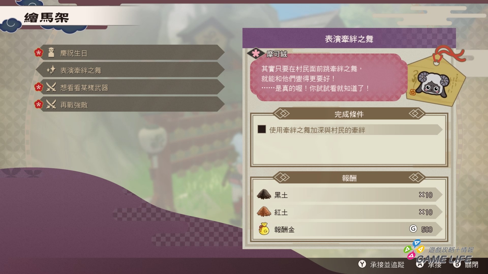 不只如此,舞這個要素關係到屬性跟農務的加速,對降低遊戲難度也有不小的幫助,最簡單好理解的就是屬性要素,本作強敵多半都會有屬性相剋的概念,雖然無視這點也多半有辦法戰勝,但針對敵人的弱點屬性,使用對應的舞,光是能讓強敵暫時無法行動,就能在頭目戰輕鬆很多。