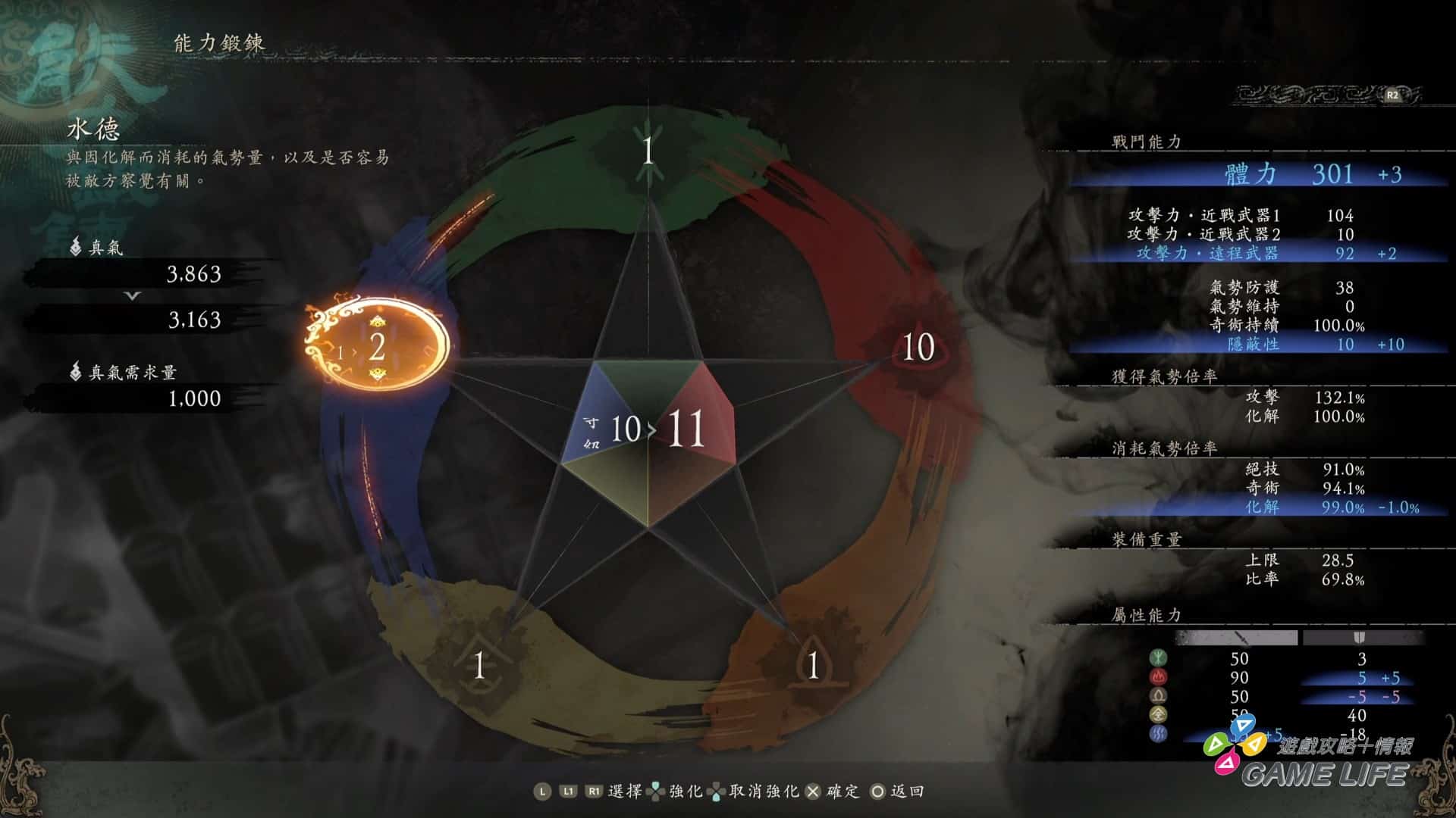 主要遊戲流程也跟《仁王》系列一樣,戰鬥跟探索過程中會收集到各式各樣的裝備,透過不斷替換裝備來強化自我。同樣地,人物成長也有經驗值設定,經驗值累積後在據點消耗來提高特定數值增強戰鬥力,這部份也受到創造角色選擇屬性影響,會因應選擇屬性不同,特定數值各有高低差異,看是否要補強較弱的數值、或者讓強項更加厲害。