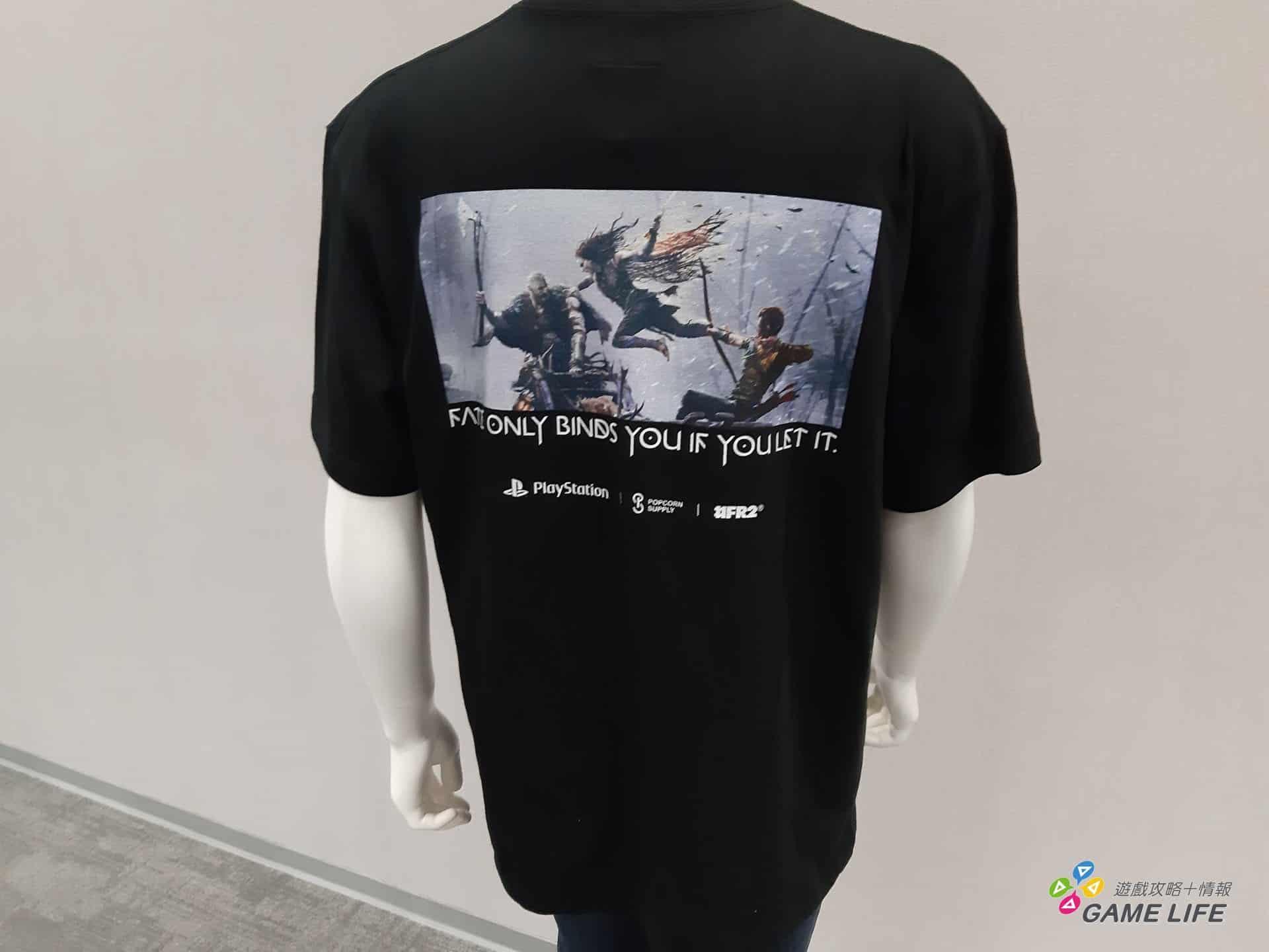 除了手的部分,身體也可以打造出《戰神》味道。與 #FR2 合作推出了合作 T 恤,這款 T 恤造型相當單純,不走華麗驚豔的色彩。整件衣服以黑色為底,正面僅僅印出了《戰神:諸神黃昏》的 Logo;反倒是背面,將克雷多斯、阿特柔斯與弗蕾雅的戰鬥畫面一幕給整個印上去了,這其實也不用擔心什麼劇情洩漏,玩過前作的玩家對這個狀況應該都是料想之中吧。