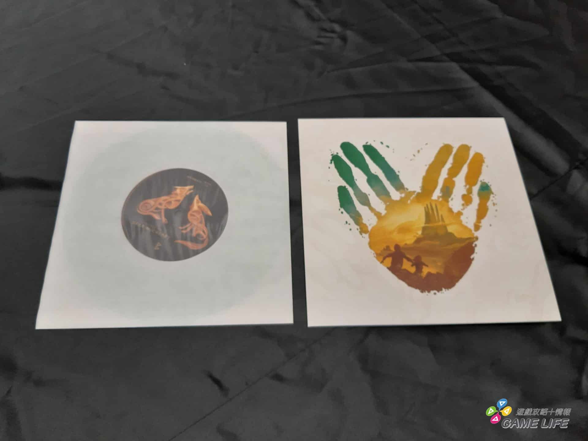 巨人版的特典內容較為豐富,還有贈送戒指、別針外,打開的「大門」後的隔板其實是有夾層的,伸手進去是可以拿出一張 18 公分黑膠磁片。整體來說主要特典版因為外盒的關係看起來相當佔空間,實際上一一取出來就會發現還好,主要都是雷神之槌把外盒的體積撐起來。