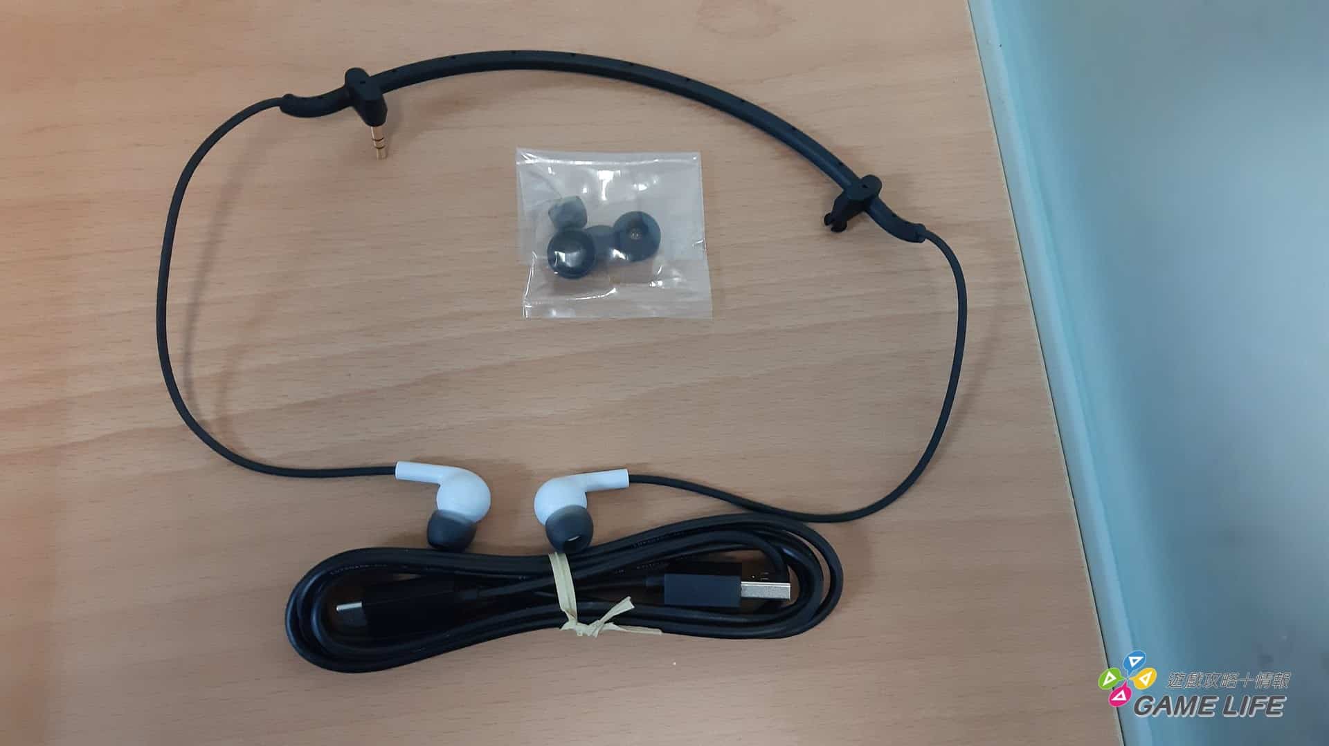 拿起小盒子後就會看到包裝好的 VR 頭套跟左右兩邊的專用控制器了。頭套跟 PS VR 相比是有比較輕,但還是很大一個且厚重。與 PS VR 相同,前端上方跟後方都有按鈕可以拉開頭套方便戴上,比較不同的是前端下方多了按鈕,後端下方則有耳機孔讓玩家插上上述的耳機。後面的耳機孔乍看之下只要插一邊,其實兩邊都要插,左側插完再塞右側,因為右側是用「卡住」的形式裝進去,要拿下來可能需要點力氣。