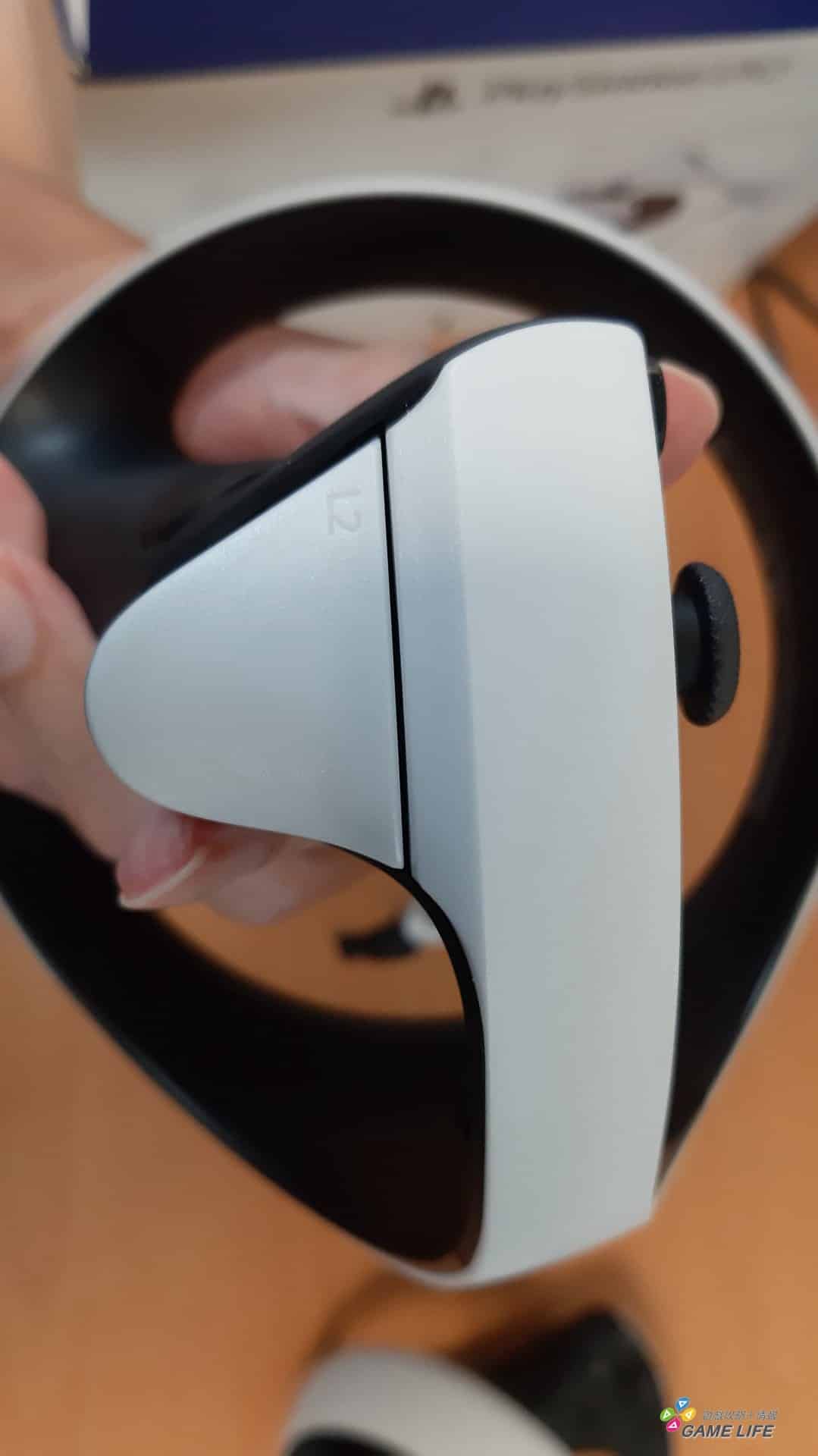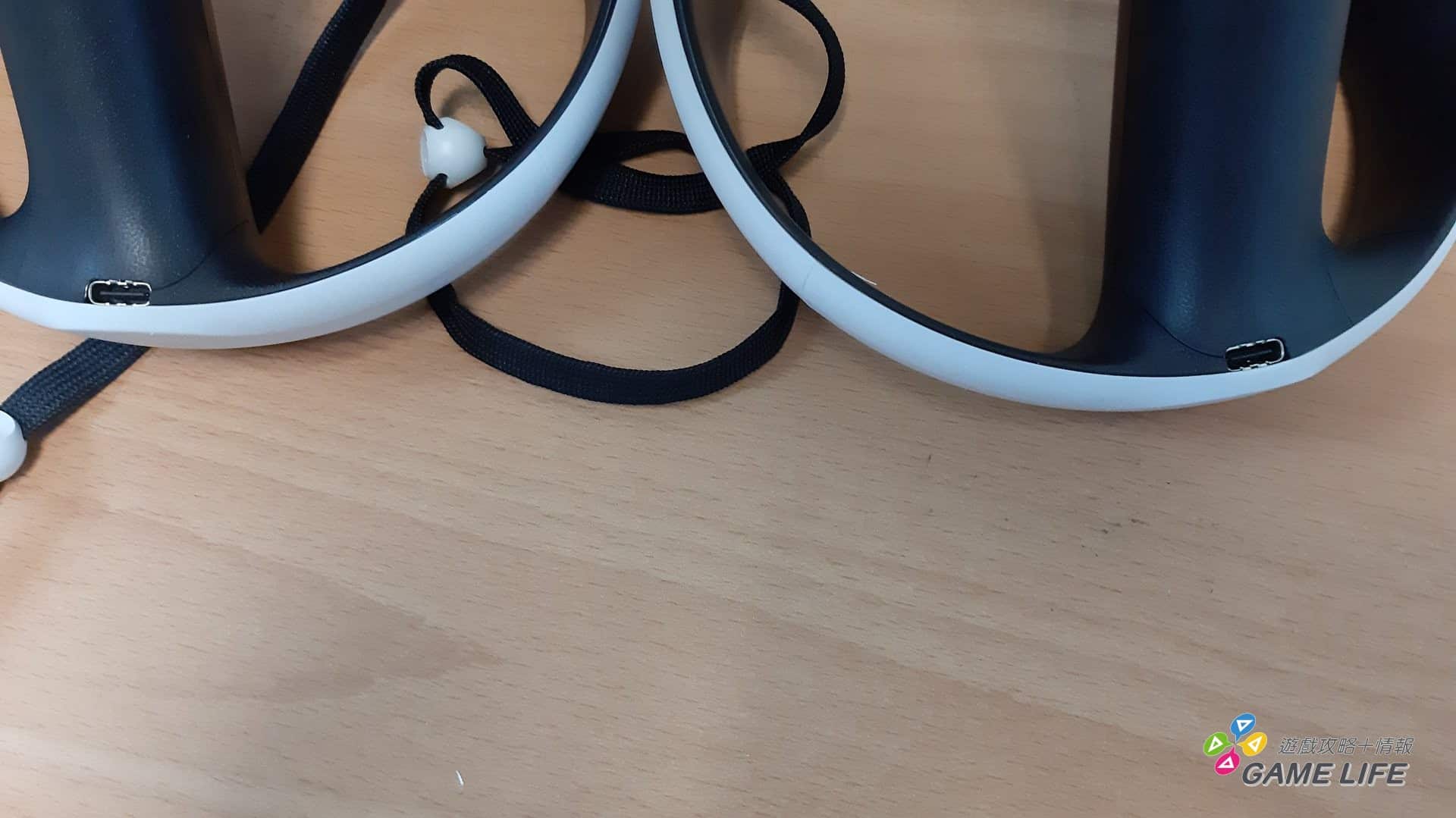 不同於 PS VR 要拿又長又不方便設定的控制器,PS VR2 的專屬控制器就特別設計成方便雙手持用了。類似 Switch 的手把,將原本 PS5 手把的功能與按鍵分成左右兩邊,另外兩邊手把底下都有 USB 插槽,與原本的 PS5 手把相同是 Type C。