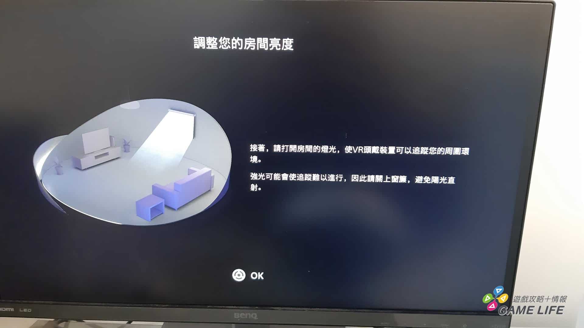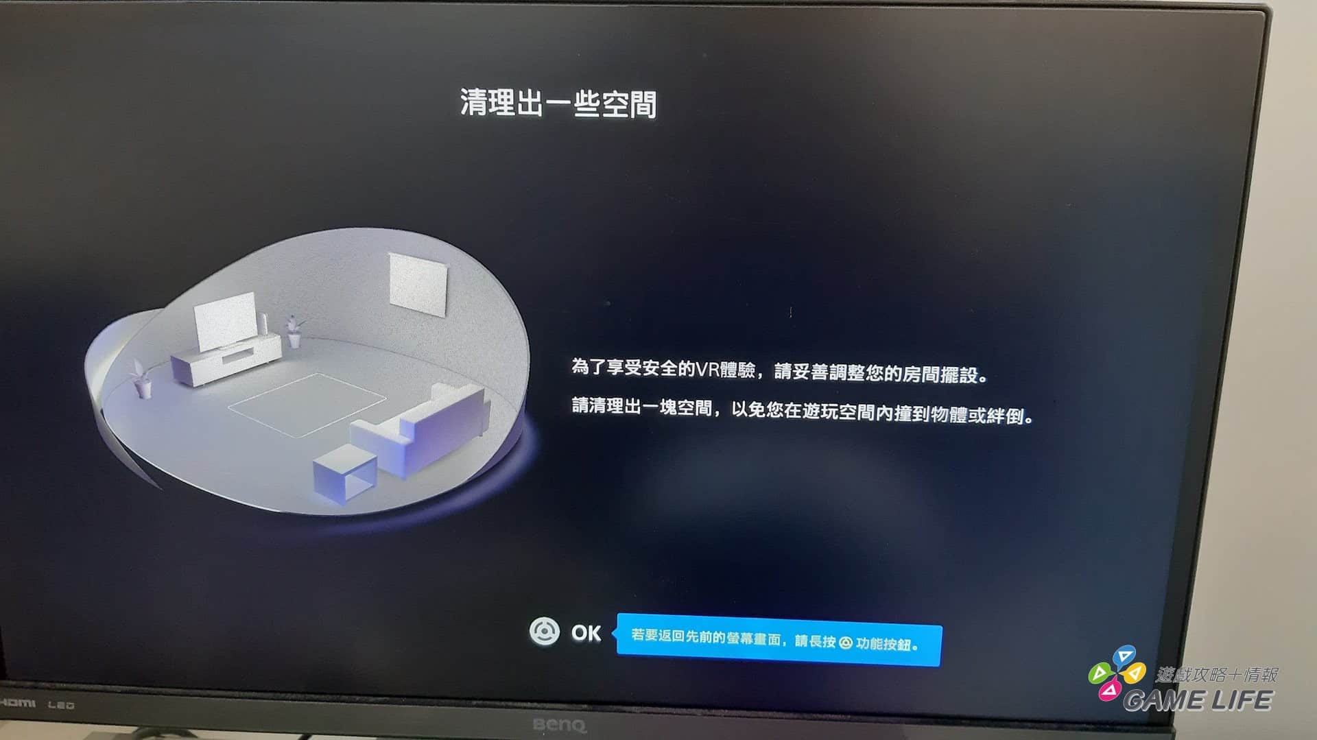 跟大多數的 VR 相同,要玩就是要充足的空間跟光線,值得注意的是這回 VR 頭套不只是有提供 VR 畫面的功能、還兼具的偵測功能,例如偵測周圍的空間模擬地形與判斷房間亮度。戴起來很頗重需要花點時間細微調整這點也還是沒變,不過這頭套倒是有個很大進步的功能是連動漫畫小說中提到的 VR 都不一定有做到。