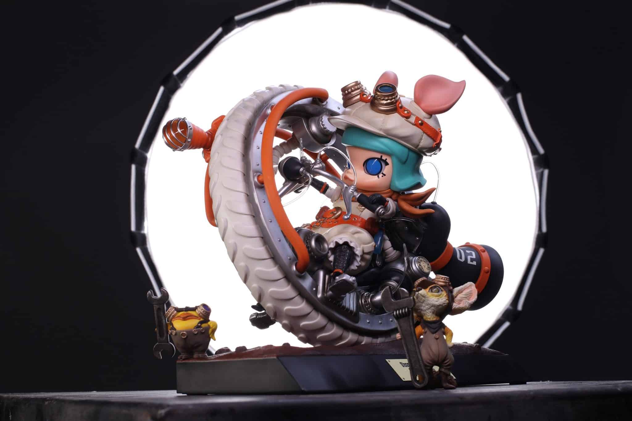 可愛的 MOLLY 總是身穿獨一無二的閃亮造型登場,而日本藝術家鐮田光司與 MOLLY 之父 Kenny Wang 再度攜手創作聯名作品。繼狐狸大號後,這次推出小豬與小豬收藏版大號,酷甜的騎裝盡顯蒸氣龐克的華麗,巨型獨輪機車閃爍著復古機械光芒。收藏版除了設計新配色以外還有特典小雞仔在旁,展現此系列的精緻細節。