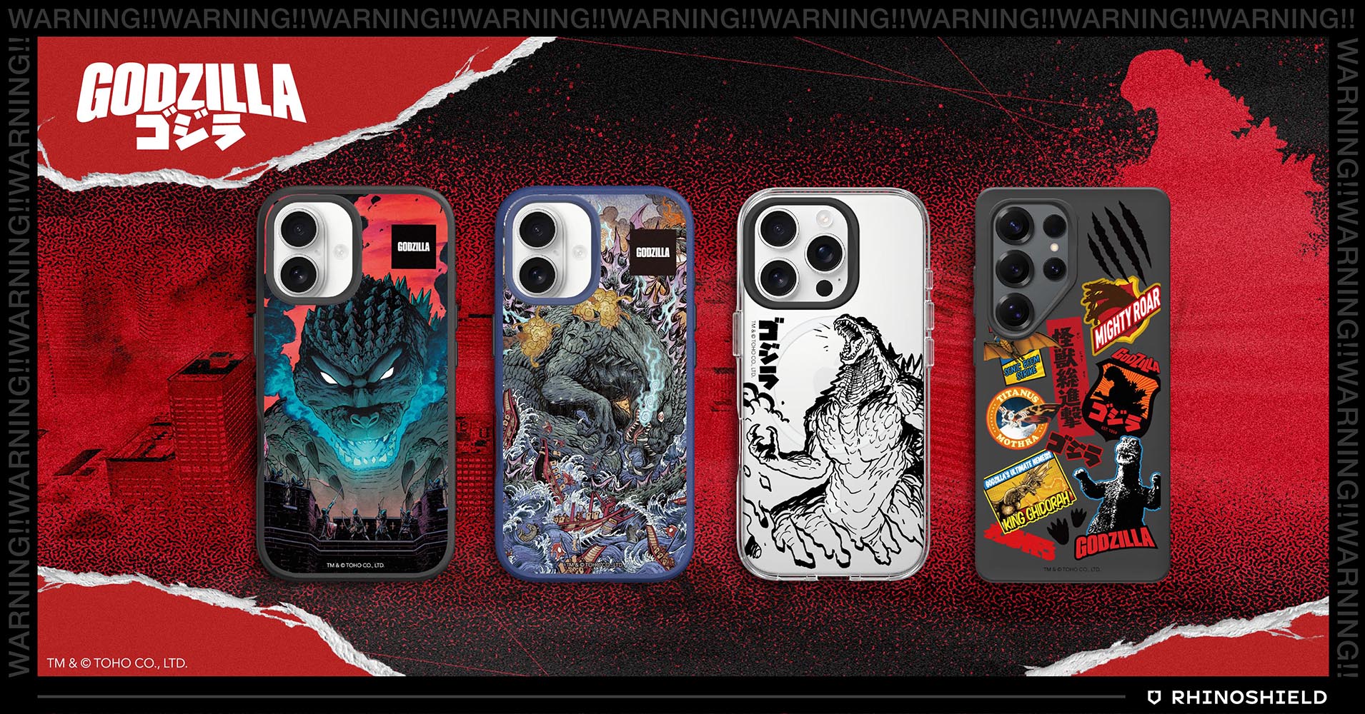 哥吉拉於 2025 年慶祝 70 週年,全球手機 3C 防護配件品牌 RHINOSHIELD 犀牛盾取得日本東寶官方授權,首波合作推出超過 30 款哥吉拉聯名設計,包含手機殼、GRIP 手機支架、AirPods 保護殼、iPad 殼等多元產品,完美重現哥吉拉的姿態。